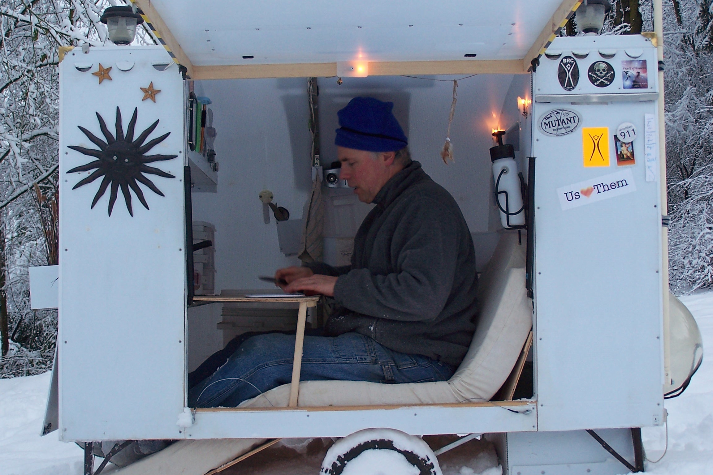 This way I could look up at the stars at night. The fresh air opening on the bottom of the bubble helped prevent condensation from my breath.