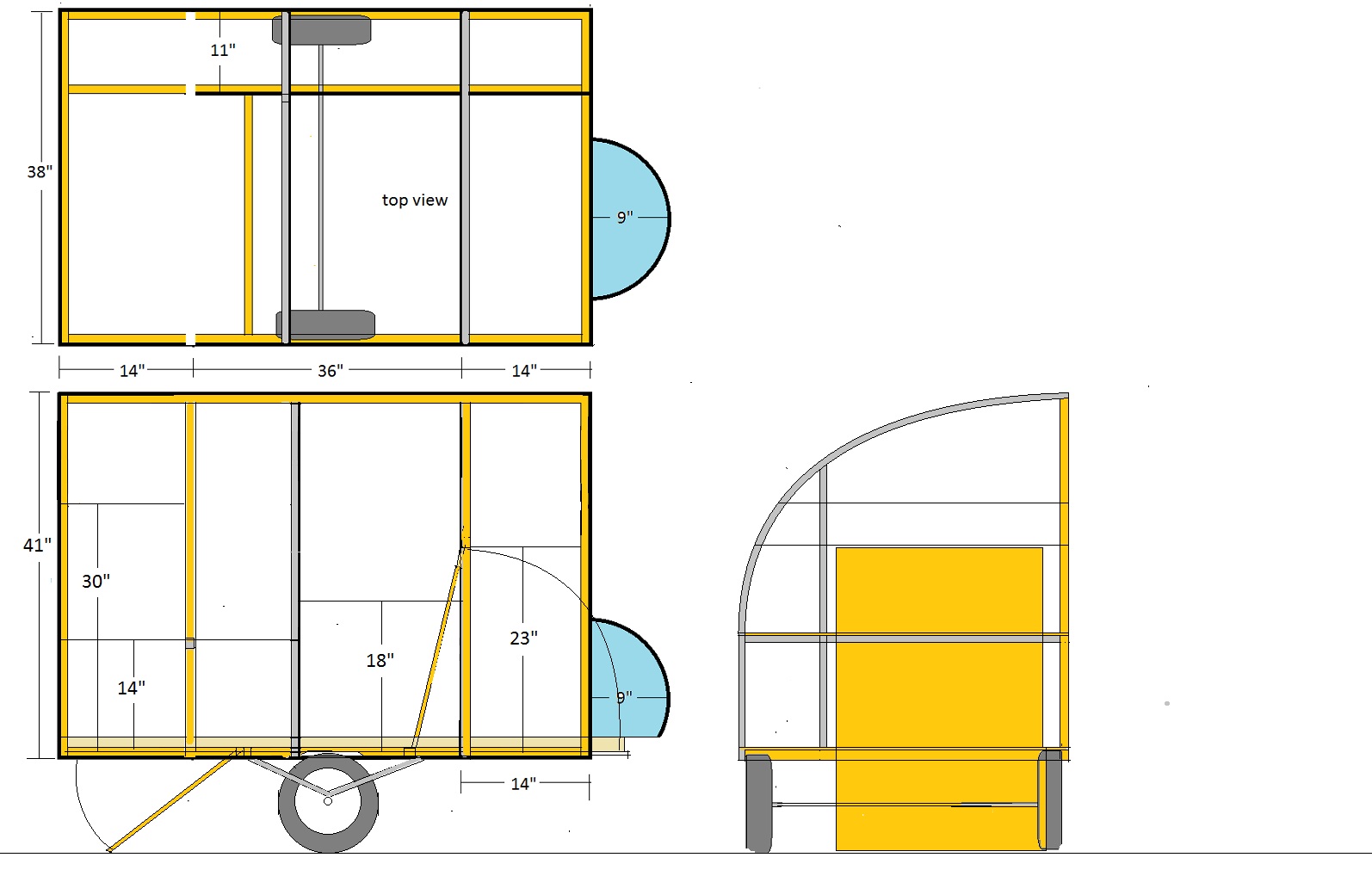 I never did make plans for this camper, but here’s a small drawing with basic dimensions for those builders interested.