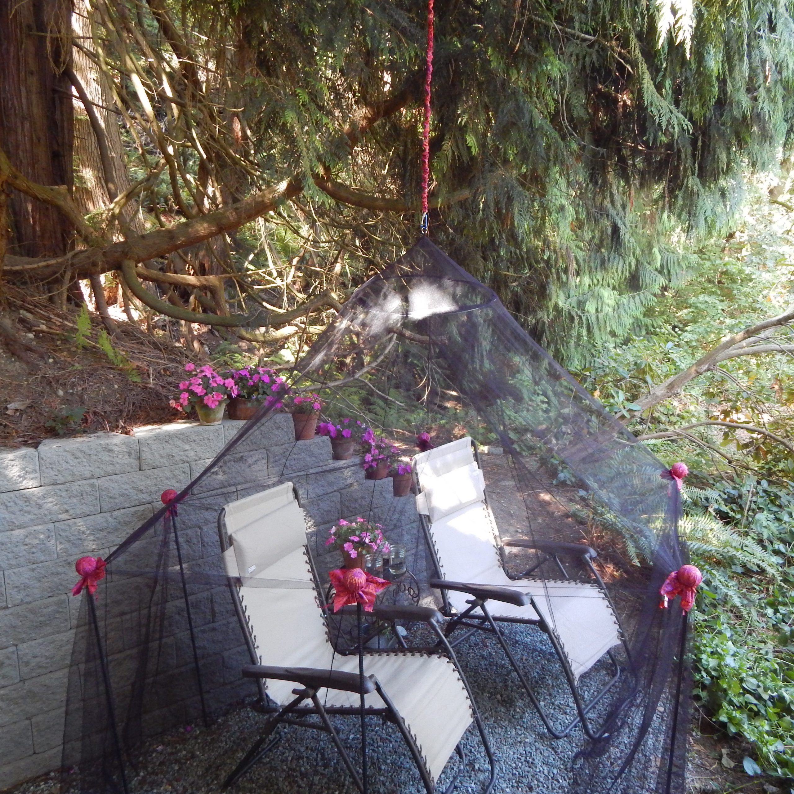 I took a canopy made for beds and make an outdoor nook for my wife and I to sit in and enjoy the summer, bug free.