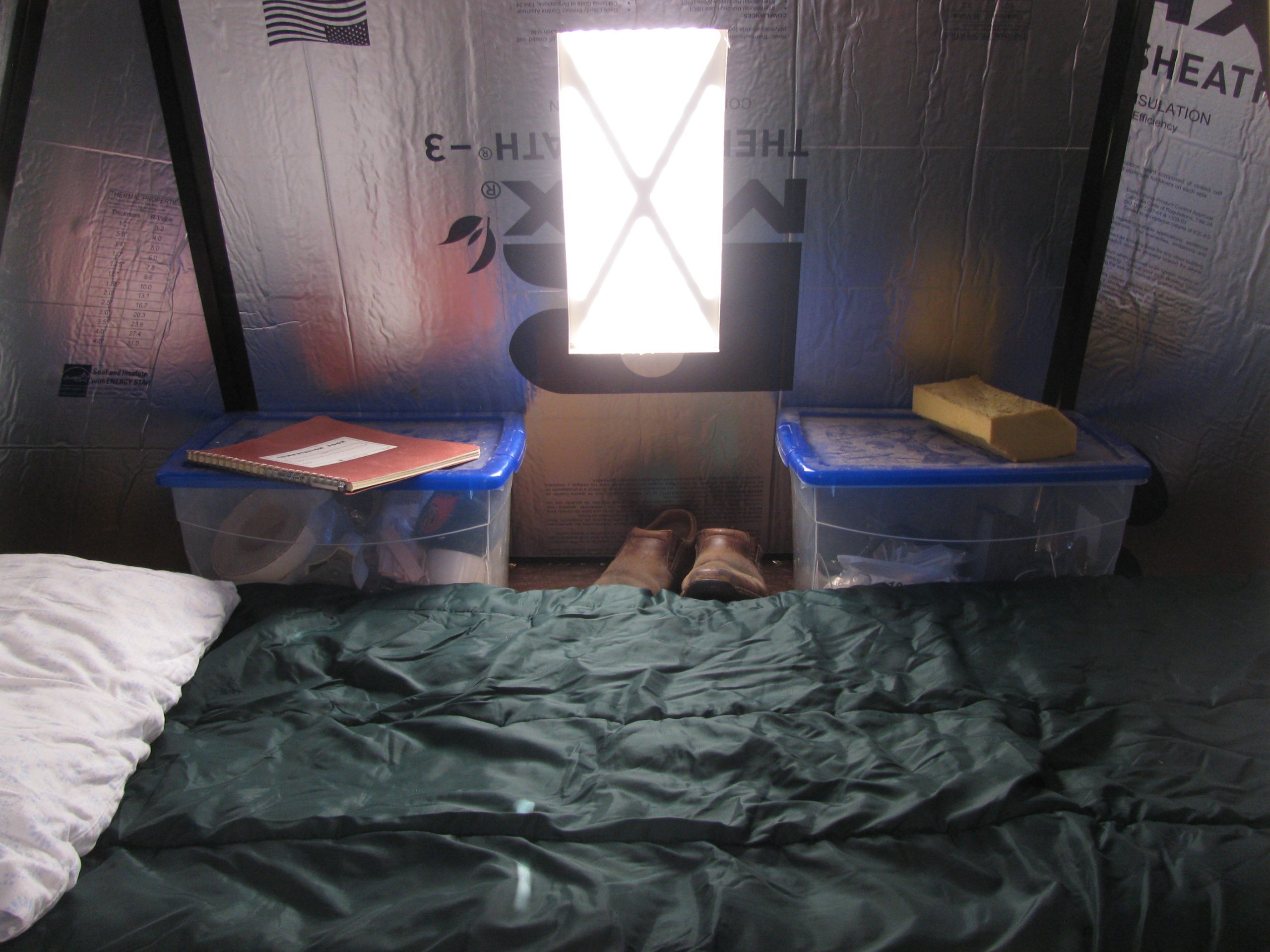 This can be sleeping quarters for two with some room for cloth bins on the side, or as a single occupant shelter.