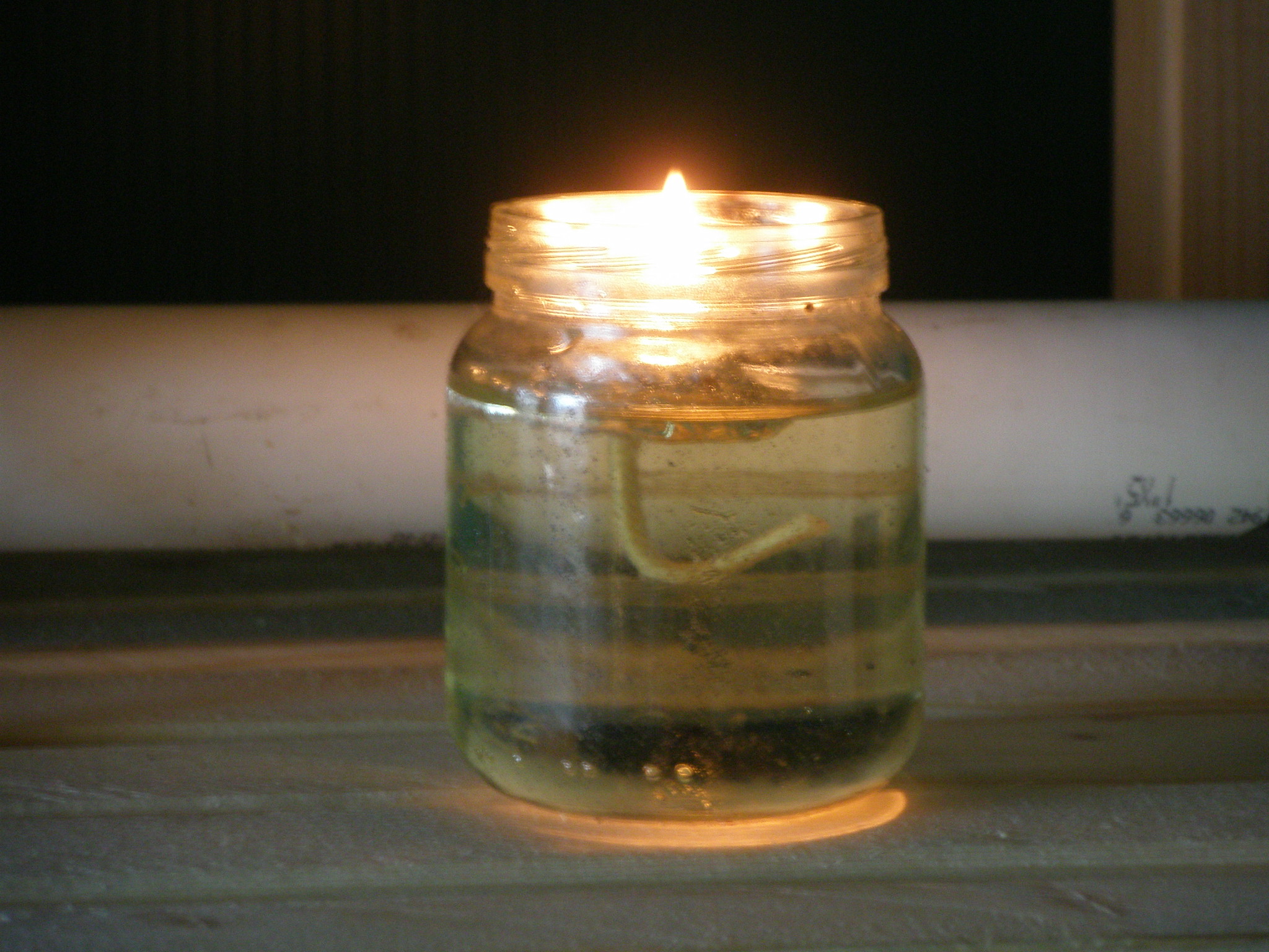 I placed the wick at about 3/16″ height before lighting it and placing it in the jar of oil.
