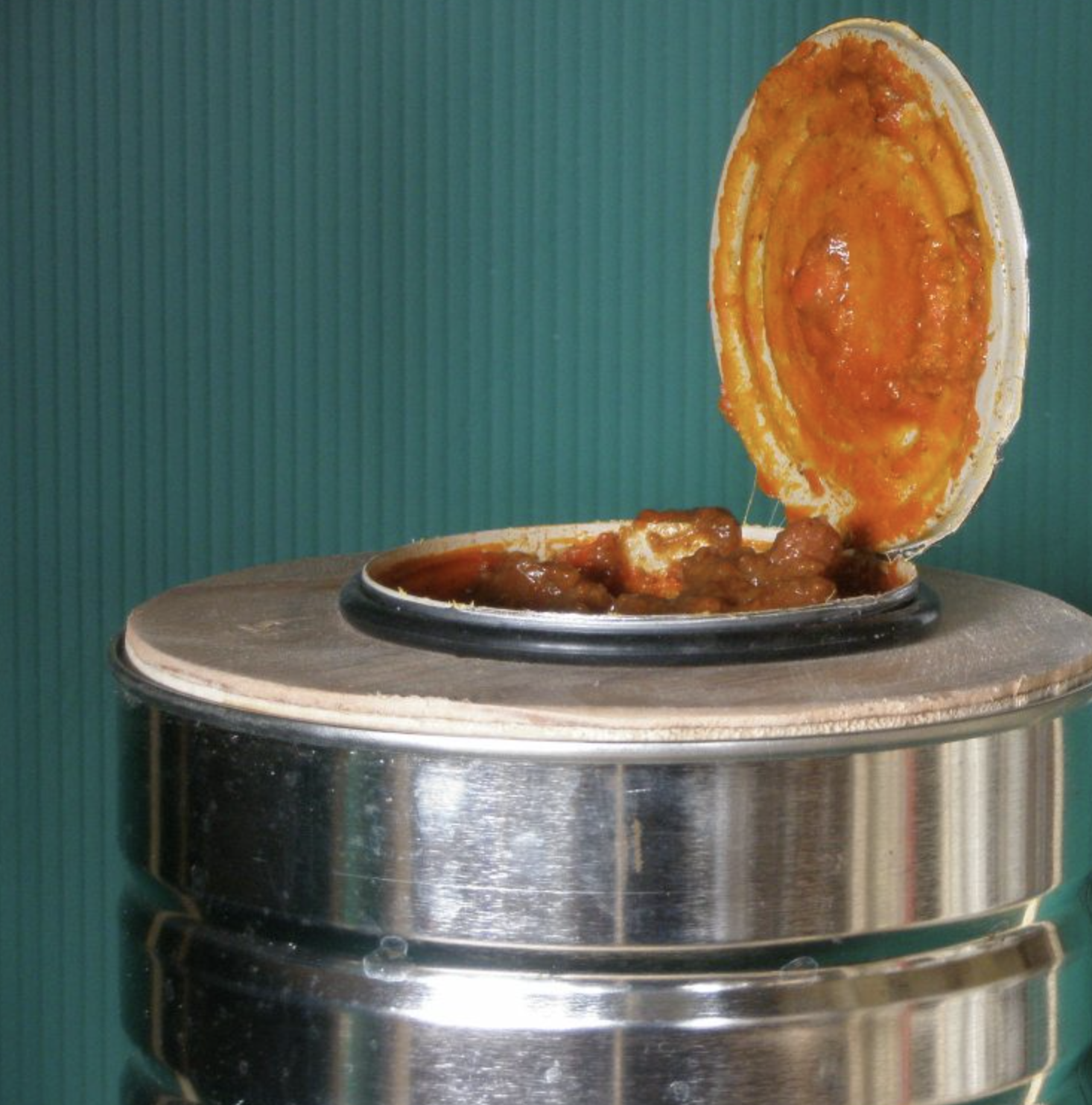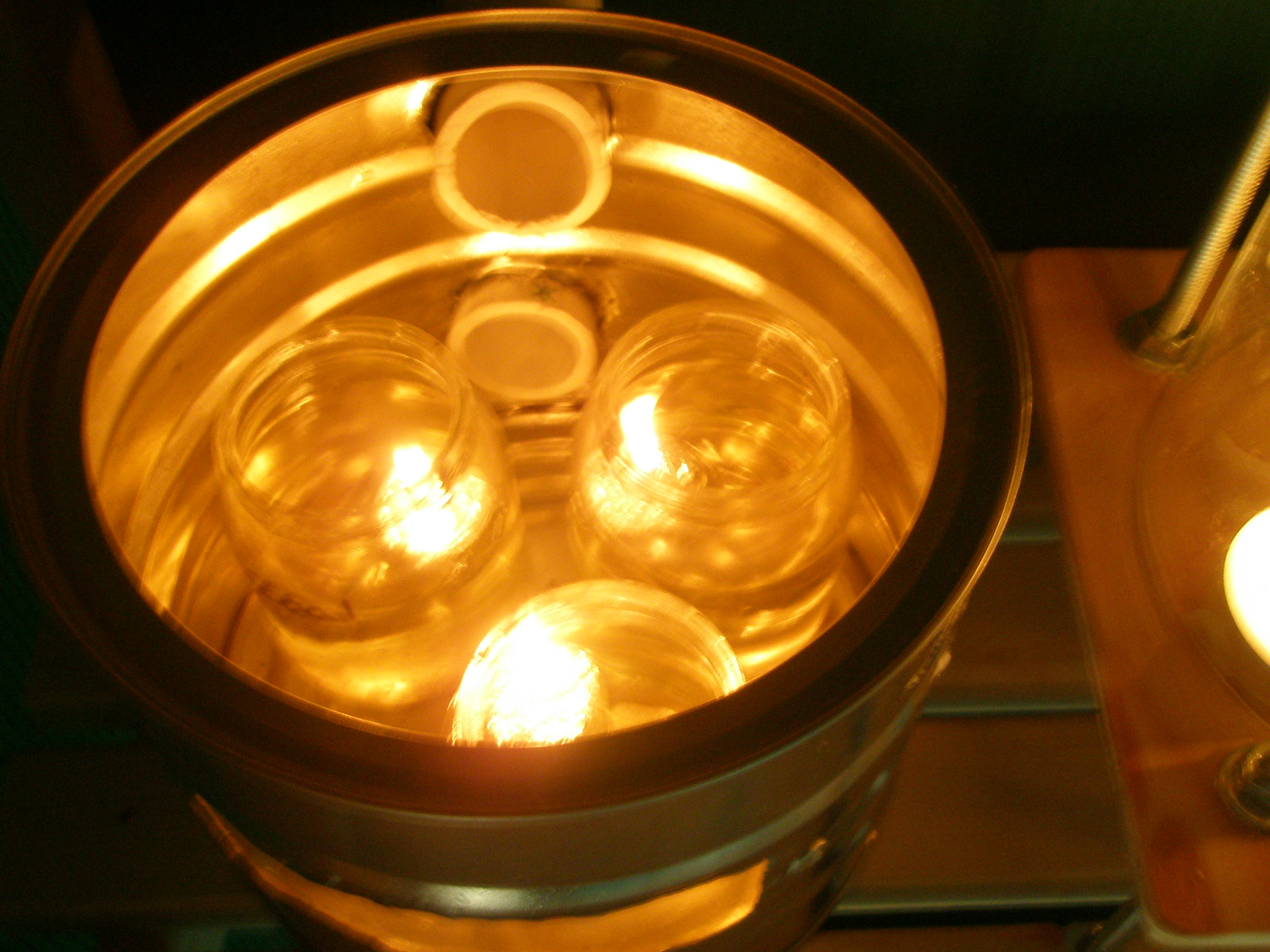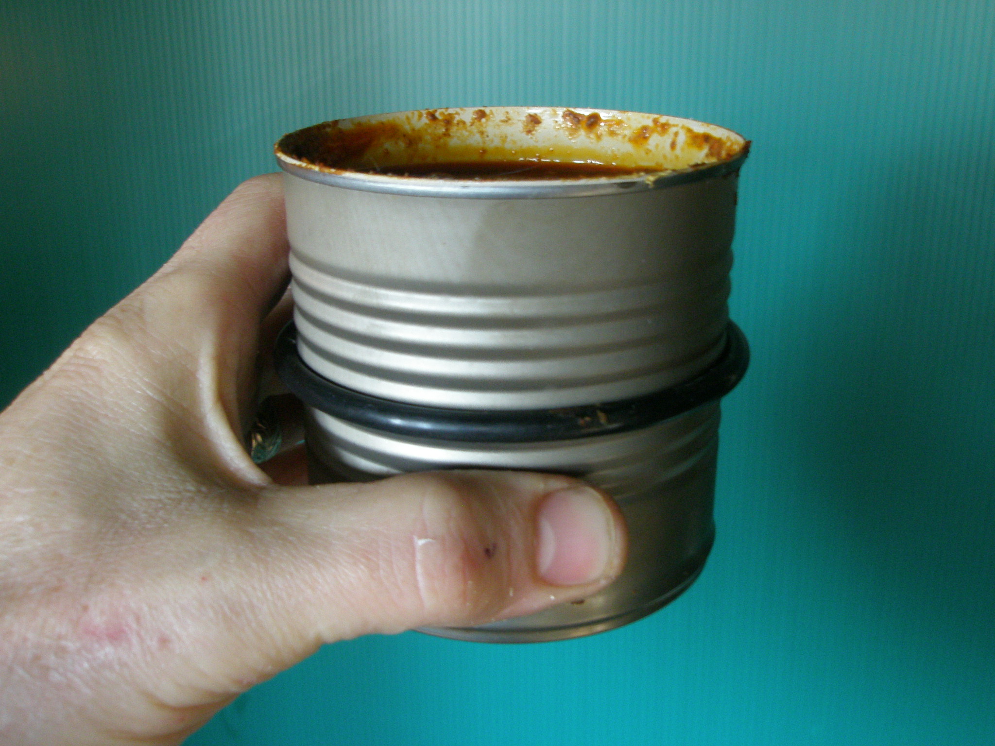 A large rubber ‘O’ ring is placed around the can. You can vary the distance to the candles by adjusting the ‘O’ ring placement on the can.
