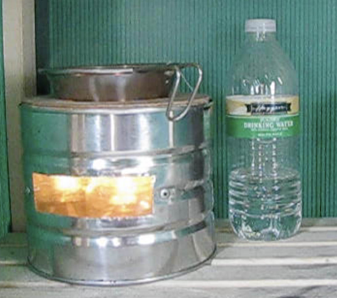 I made this heater/stove for a small push cart shelter. For the main housing I used a Costco peanut can.