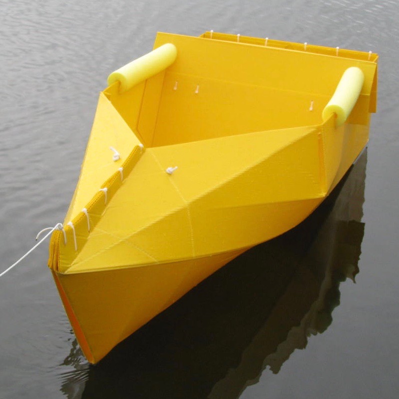 Once the releasable zip ties are removed the boat folds up into a small 2×4 foot package. Including ores, seat and foam armrests the weight comes to 10 pounds.