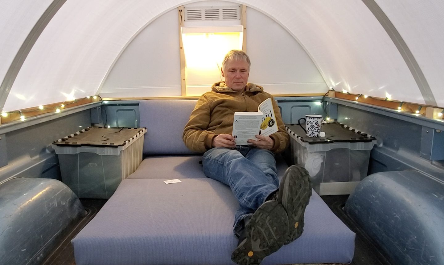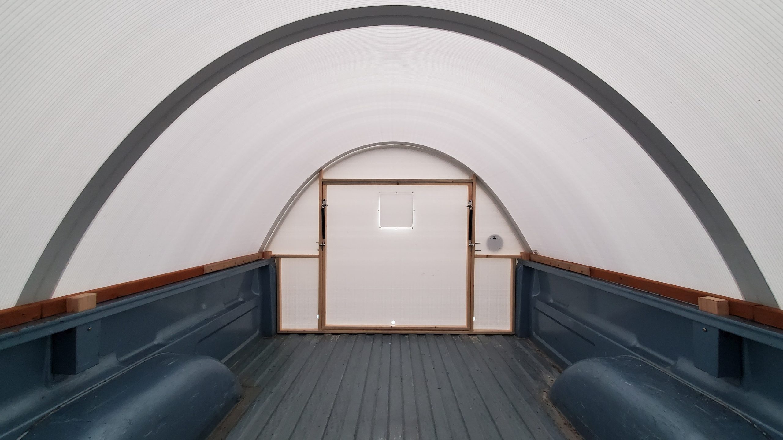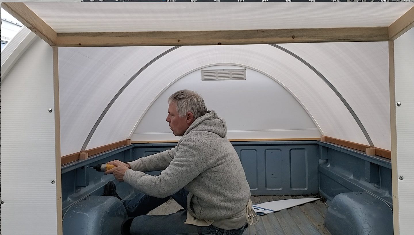 The Coro canopy is a rapid deployment truck bed cover that can be used for keeping hauled items dry or, as seen here, made into a summer camper.