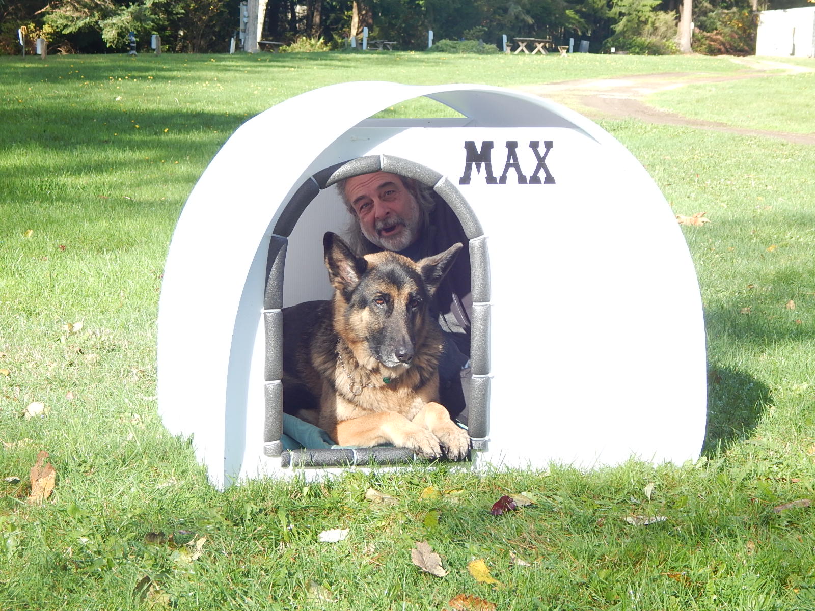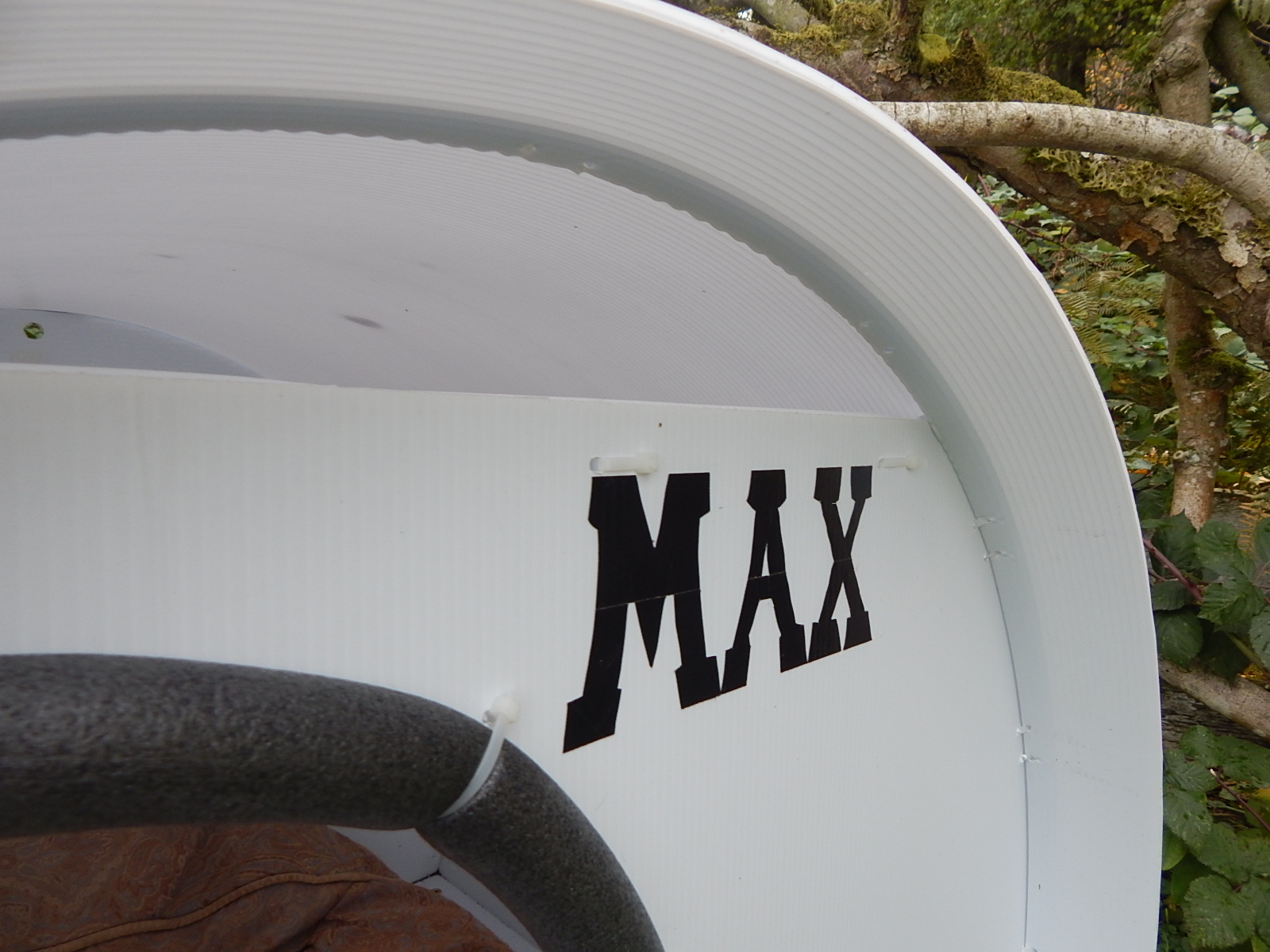 This two sheet fluted plastic shelter is held together with zip ties and is great for non-chewing large dogs, or as a play house for the youngsters!