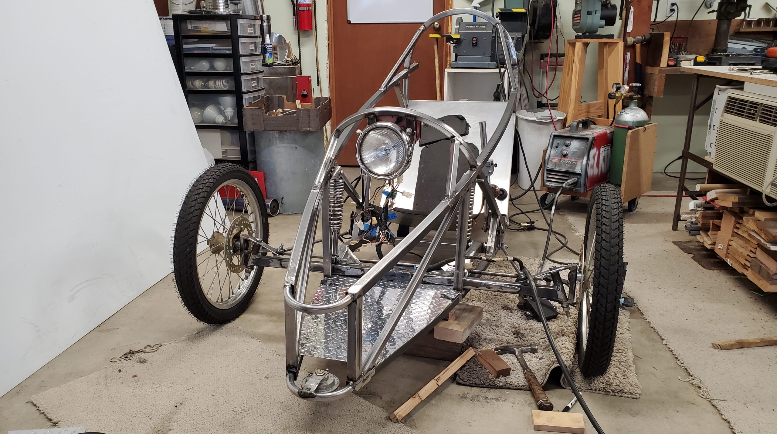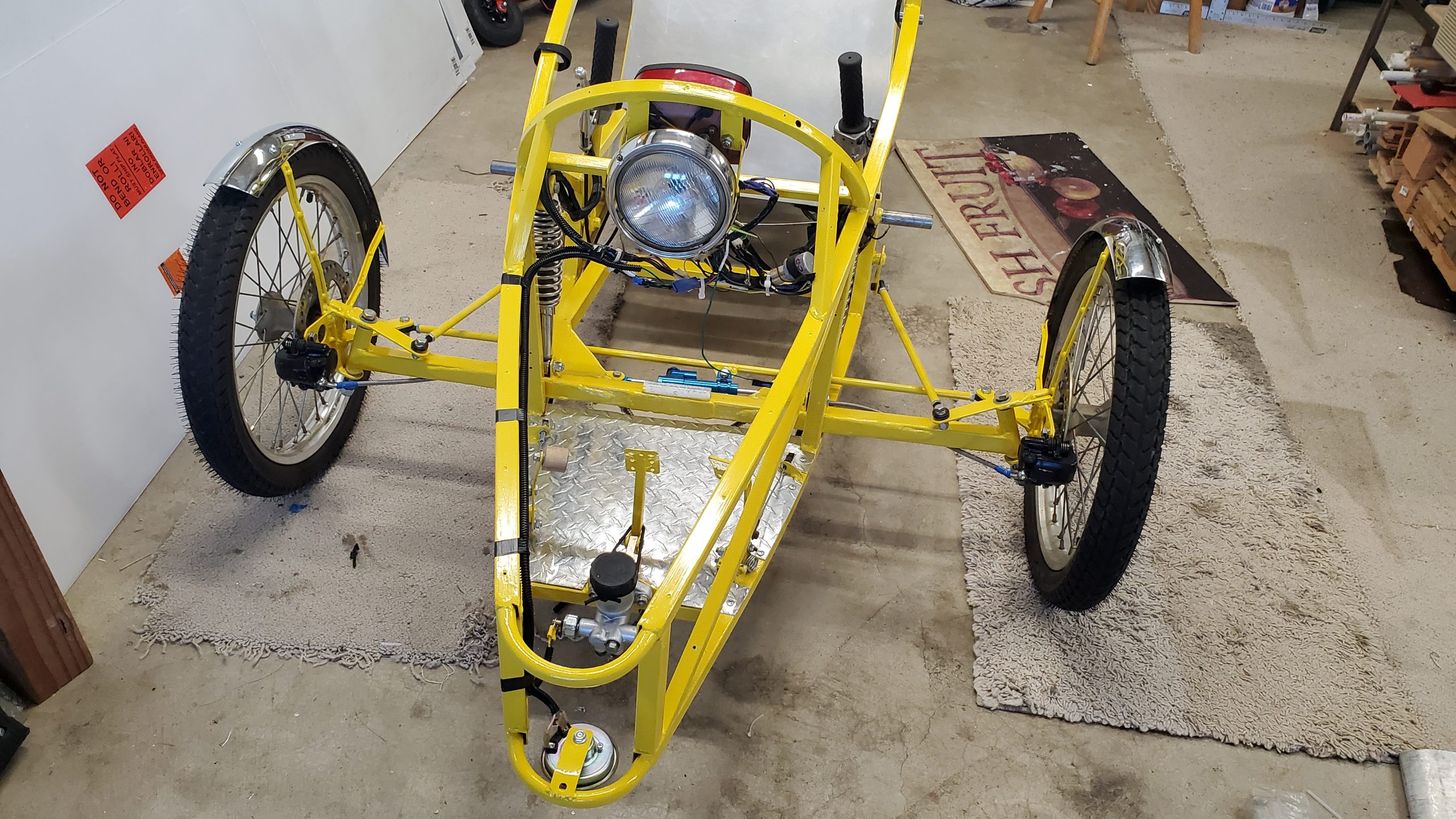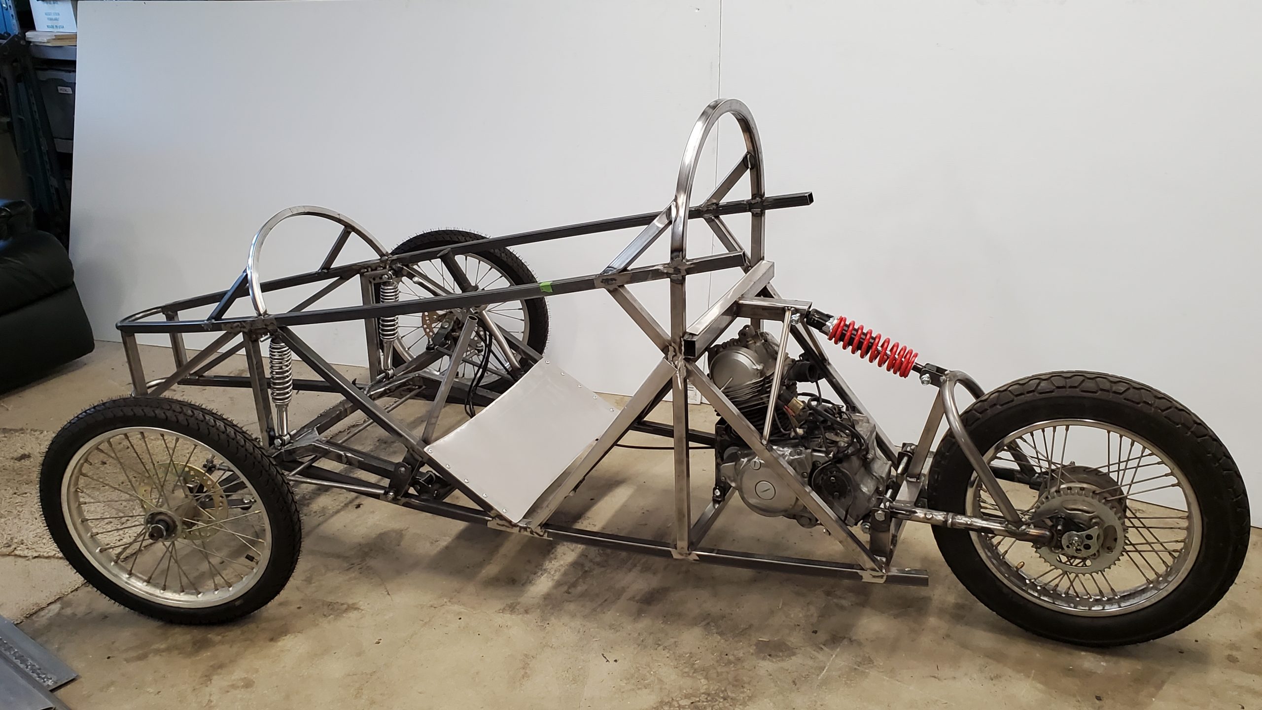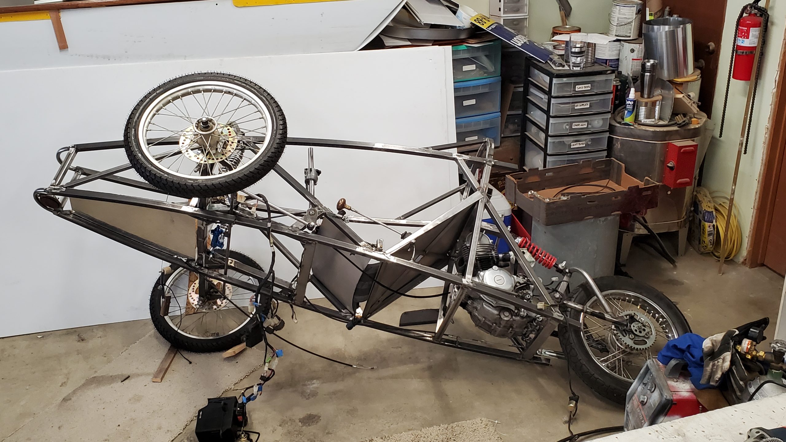 Not long ago I increased the wheelbase by lengthening the rear fork, which makes it less twitchy at higher speeds. I got it up to 68 mph. Fast enough.