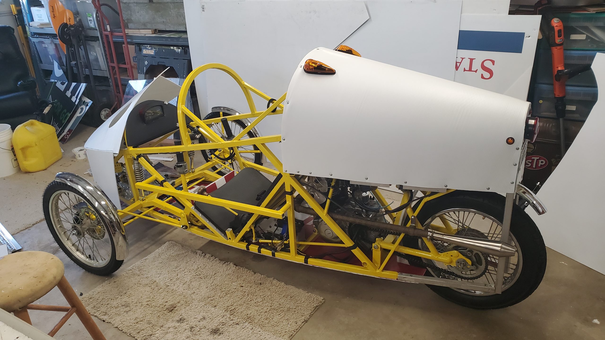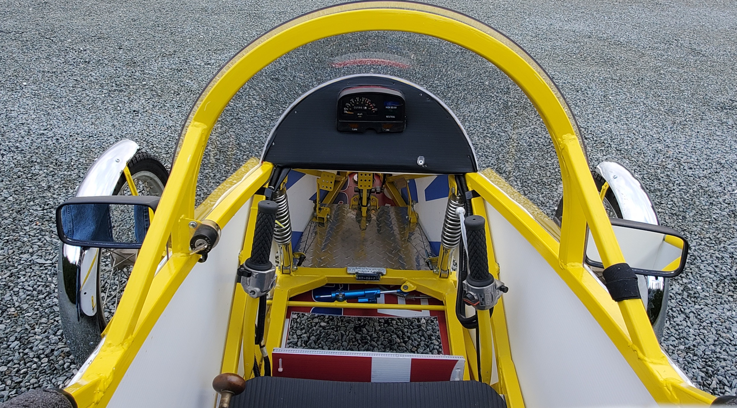 I did salvage a bit of the acrylic canopy. It is noisy inside when attached, but I did achieve 87 miles per gallon with this minimal fairing set-up.