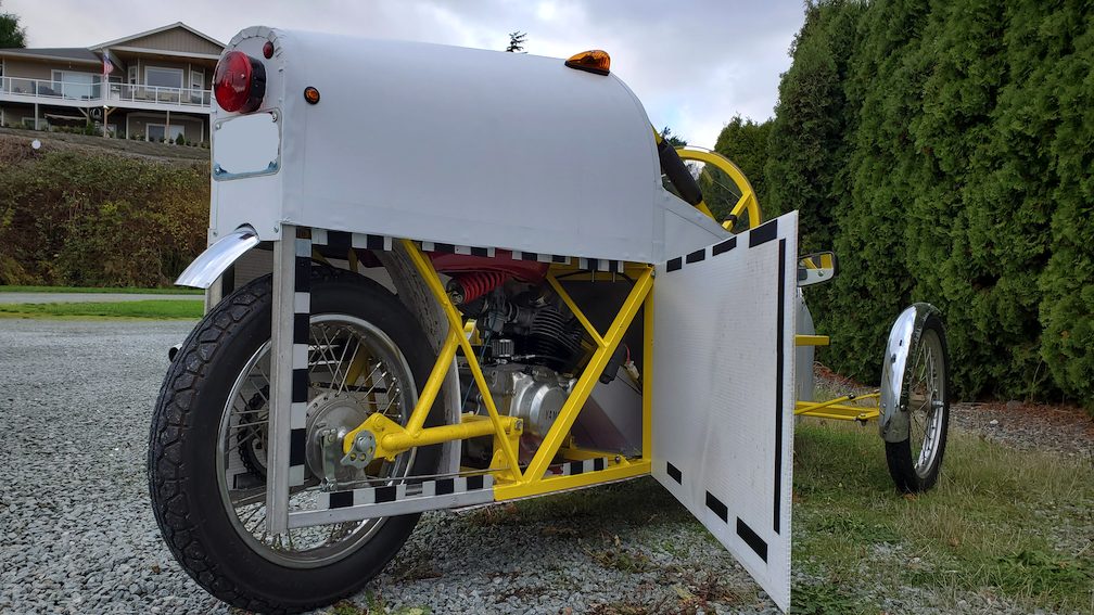 He used a Honda 90cc motor bored out to 110cc’s. The wheels were from a moped. This really inspired me.