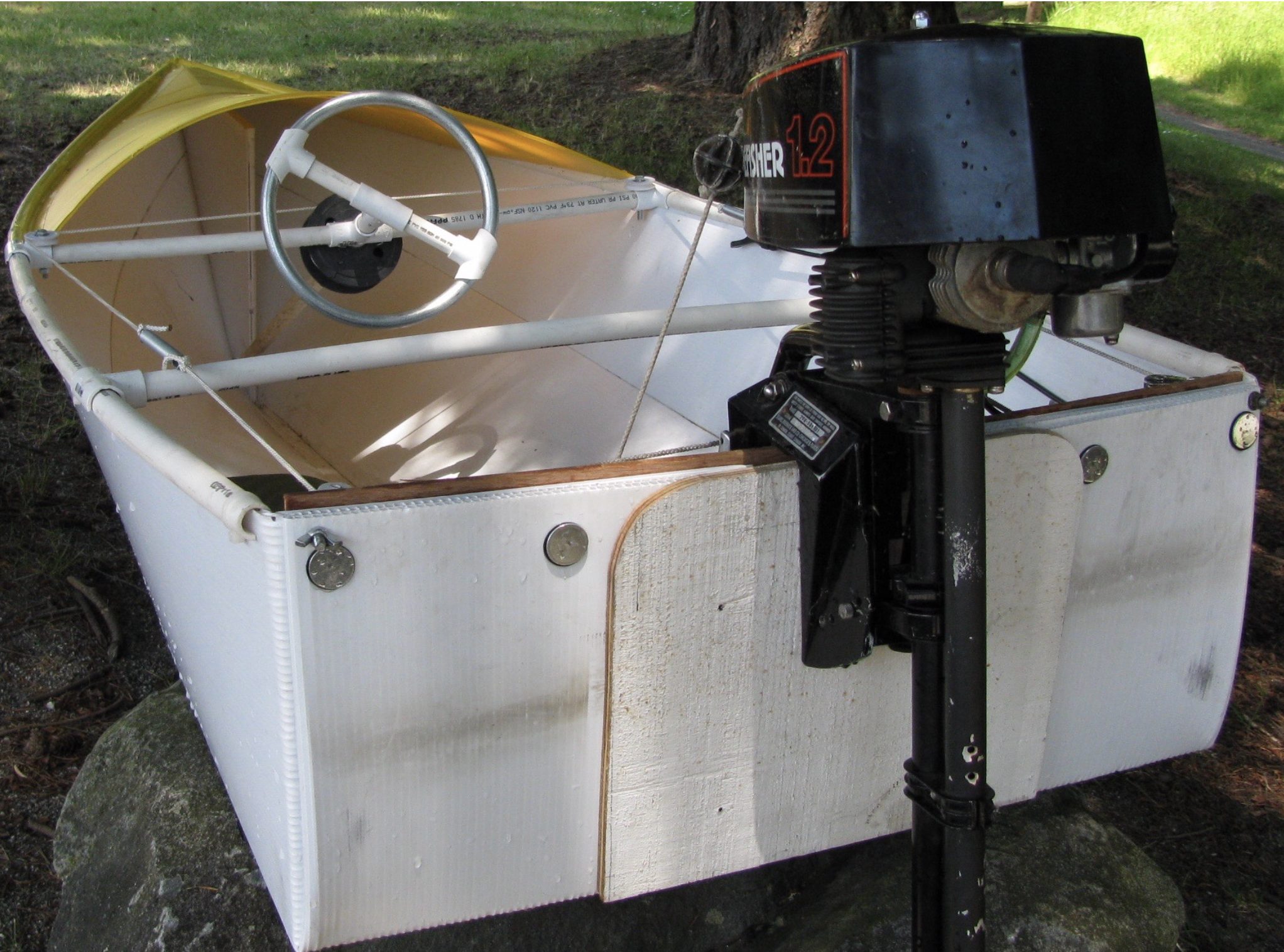 This was my first ‘V’ hull speed boat. I added a small 1.2 horsepower two cycle loud as hell Game Fisher gas motor for power.