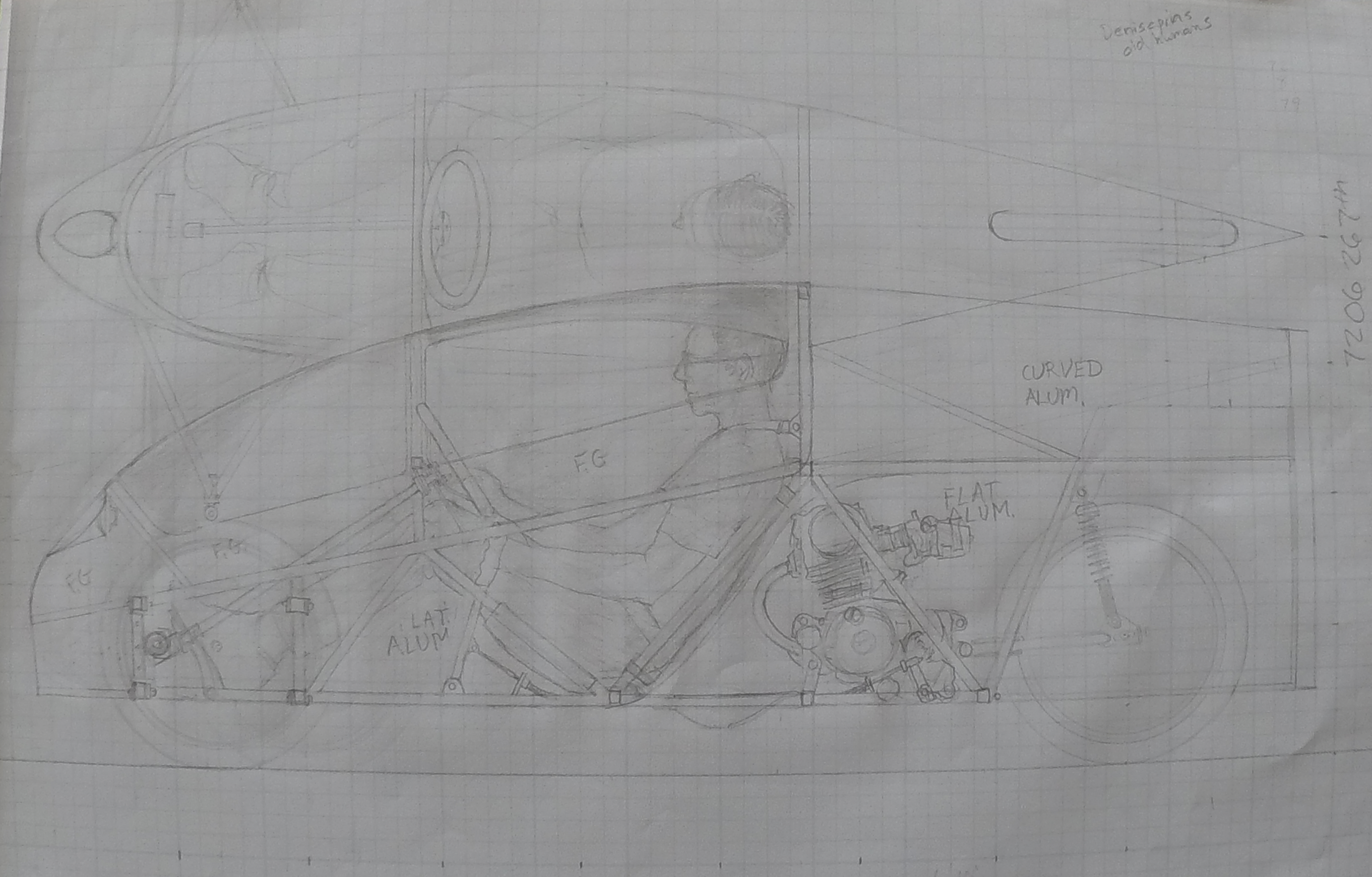 To keep the body aerodynamic yet simple, the sides will be aluminum sheeting. The only fiberglassing will be the area around the bubble wind screen.