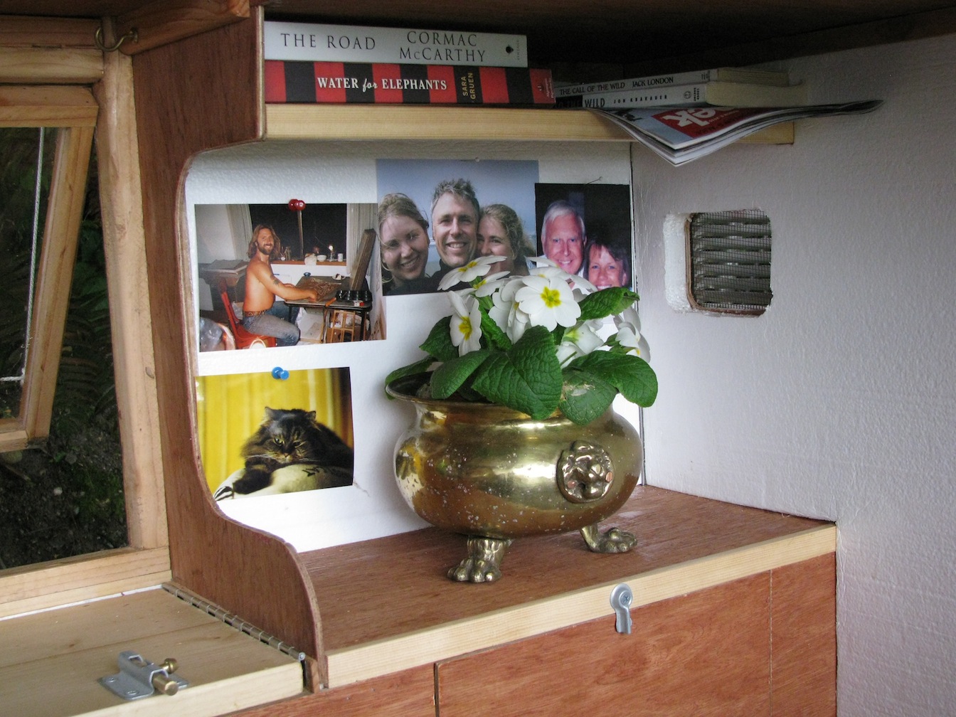 The library and flowers. Why not. Below is the dirty laundry storage area.