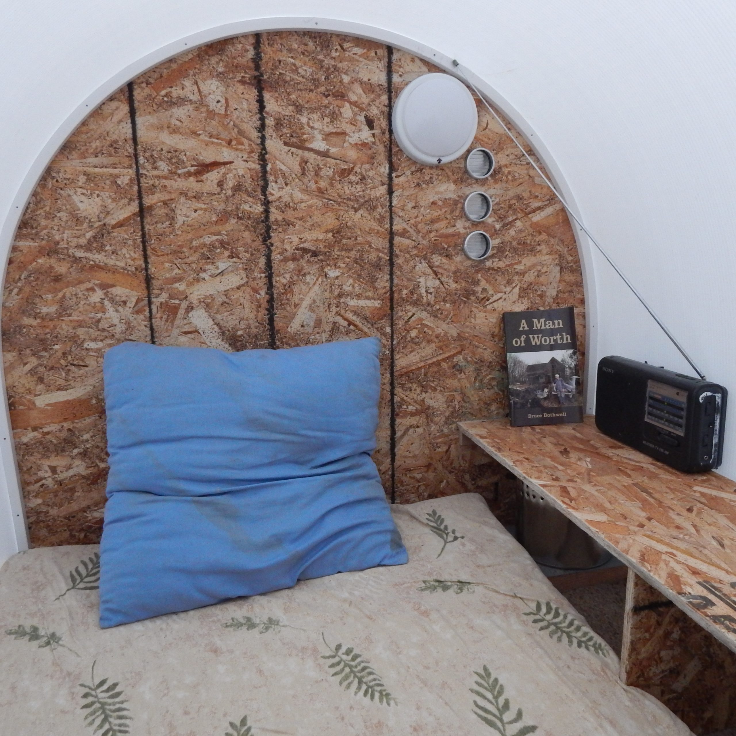I wanted to make an inexpensive sleeping pod that a church or homeless advocate organization could install outside for wintertime use.