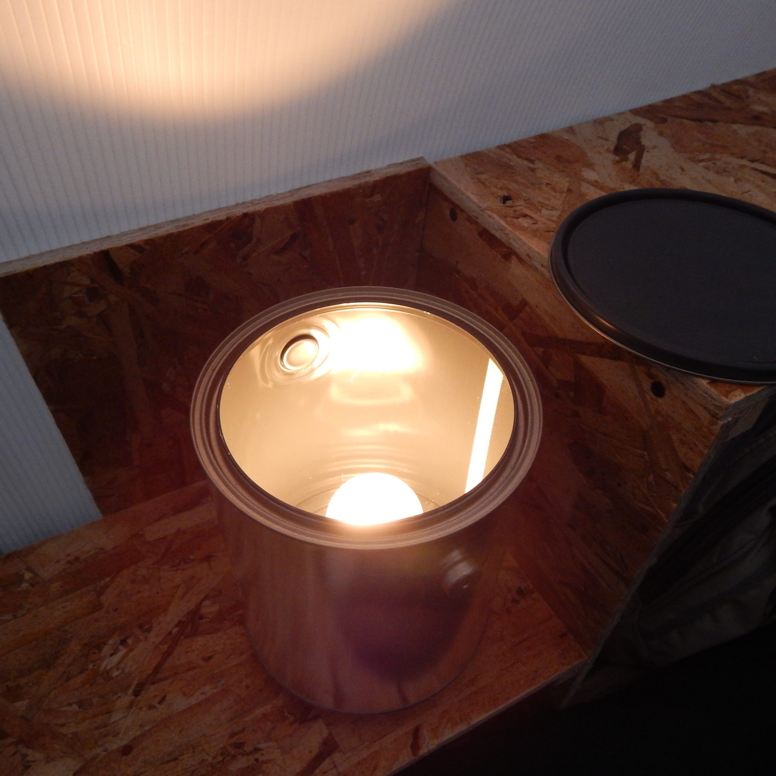 Here I’m experimenting with a 150 watt light bulb paint can heater. Unfortunately fluted plastic does not hold heat in too well.