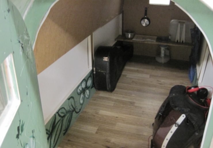 In here drawing she shows extra storage below the floor line. I did something similar on my first bike camper. Very good use of limited space.
