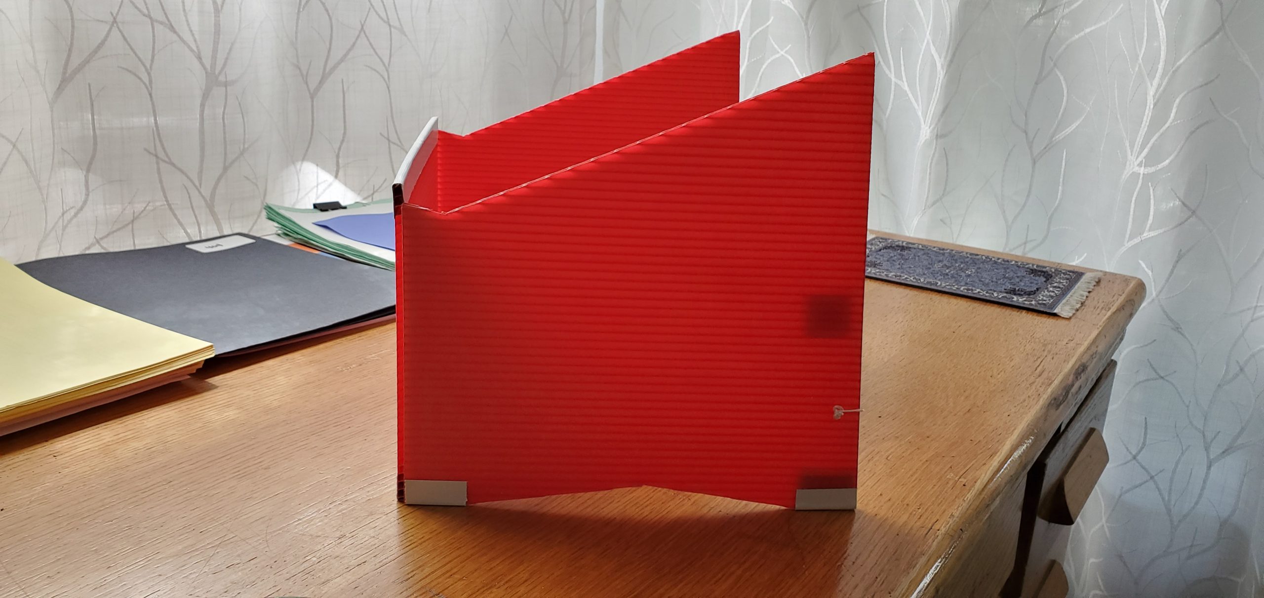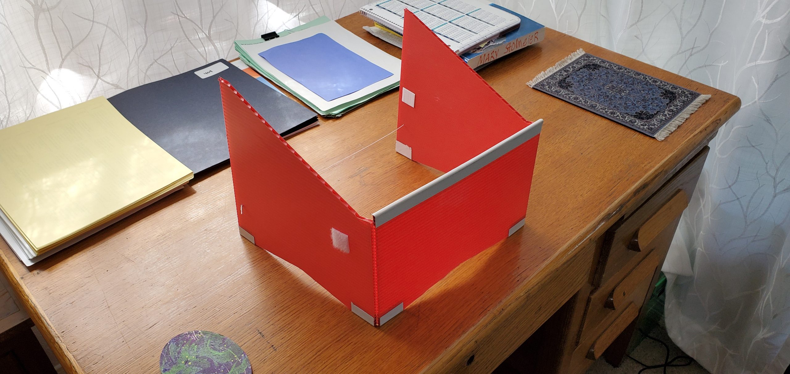 When the Covid 19 virus hit our state my wife was forced to do video conferencing instead of going to work. After viewing others on scene, with the downward unflattering shadowed look of the neck waddle and the color of their ceiling, she decided to raise her laptop with a stack of books for a more natural look. After a while she asked if I could make a legitimate computer stand. I searched a few DIY projects on the internet and YouTube and didn’t like what I saw. Most were overbuilt wooden contraptions. I like fluted plastic political signs that get thrown away after each election. If you don’t have any you can also buy a Fluted plastic Garage sale sign at your big box home improvement stores as well. These are the same size.