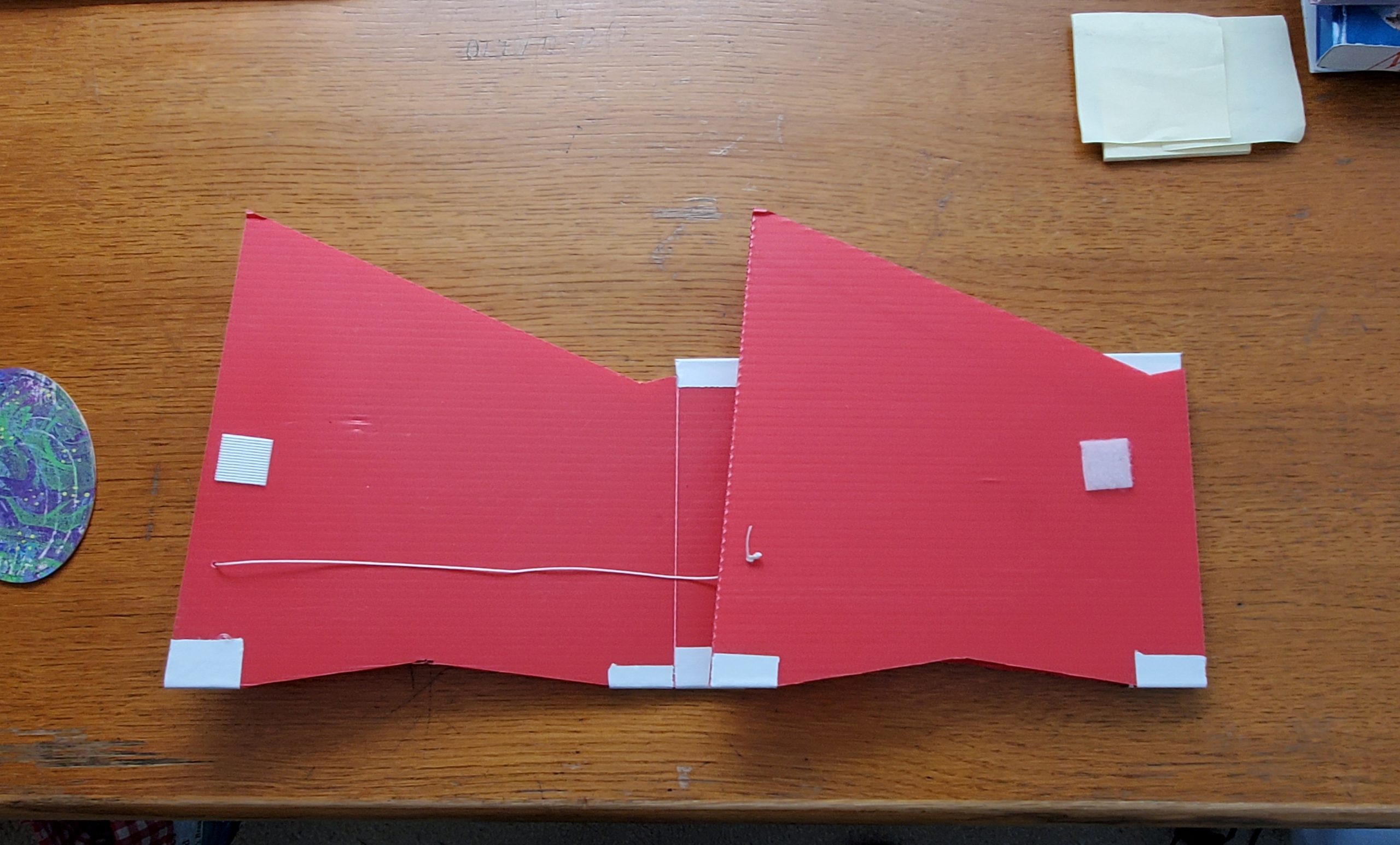 Again, the limiting string and velcro tabs for easy storage. To keep the stand from wandering, recesses were cut out on the bottoms. Vinyl tape was added to each foot pad to keep the stand from slipping around.