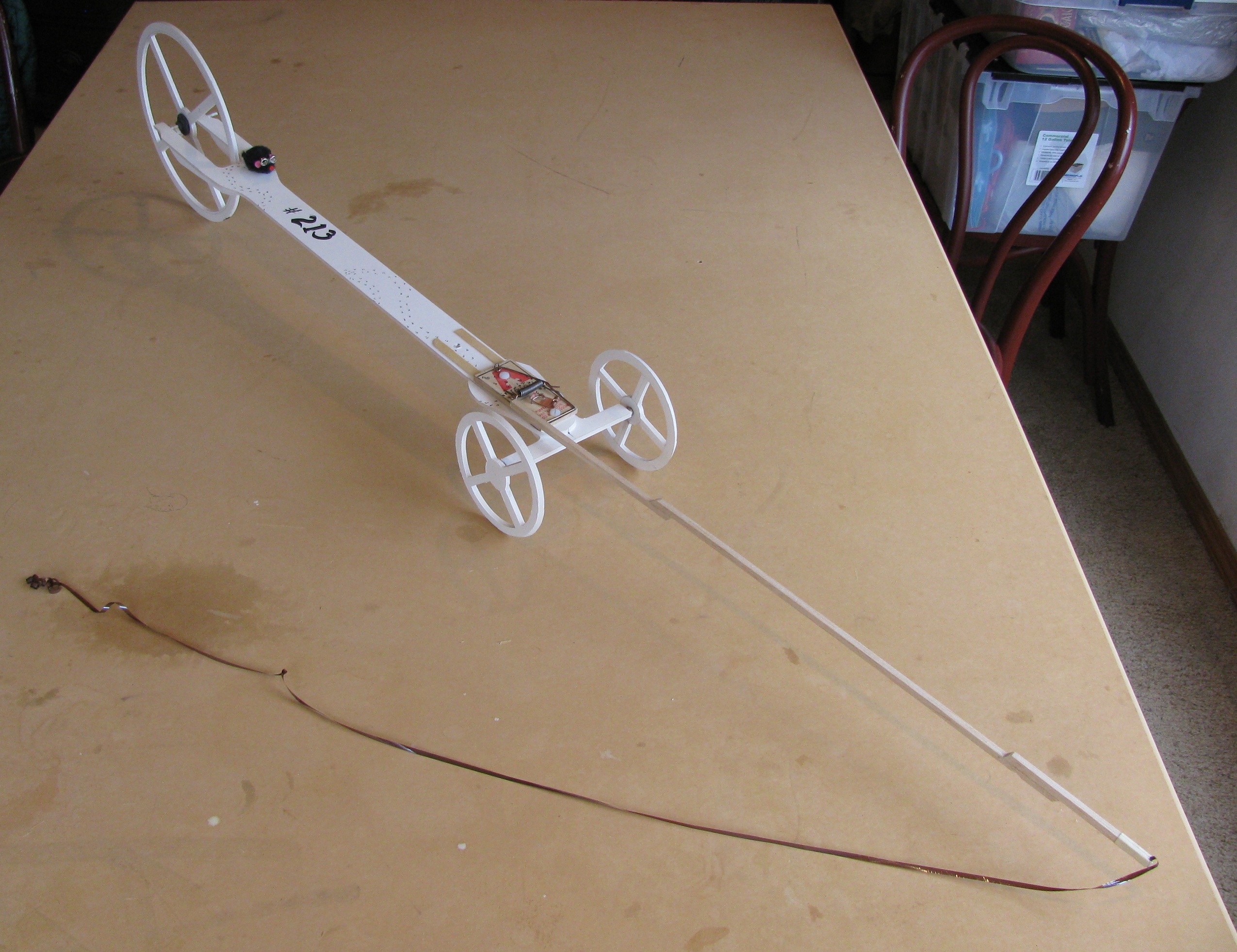 In my old shop at Boeing they use to have challenges to keep up moral. This was the mouse trap car challenge. Not for speed, but for distance.