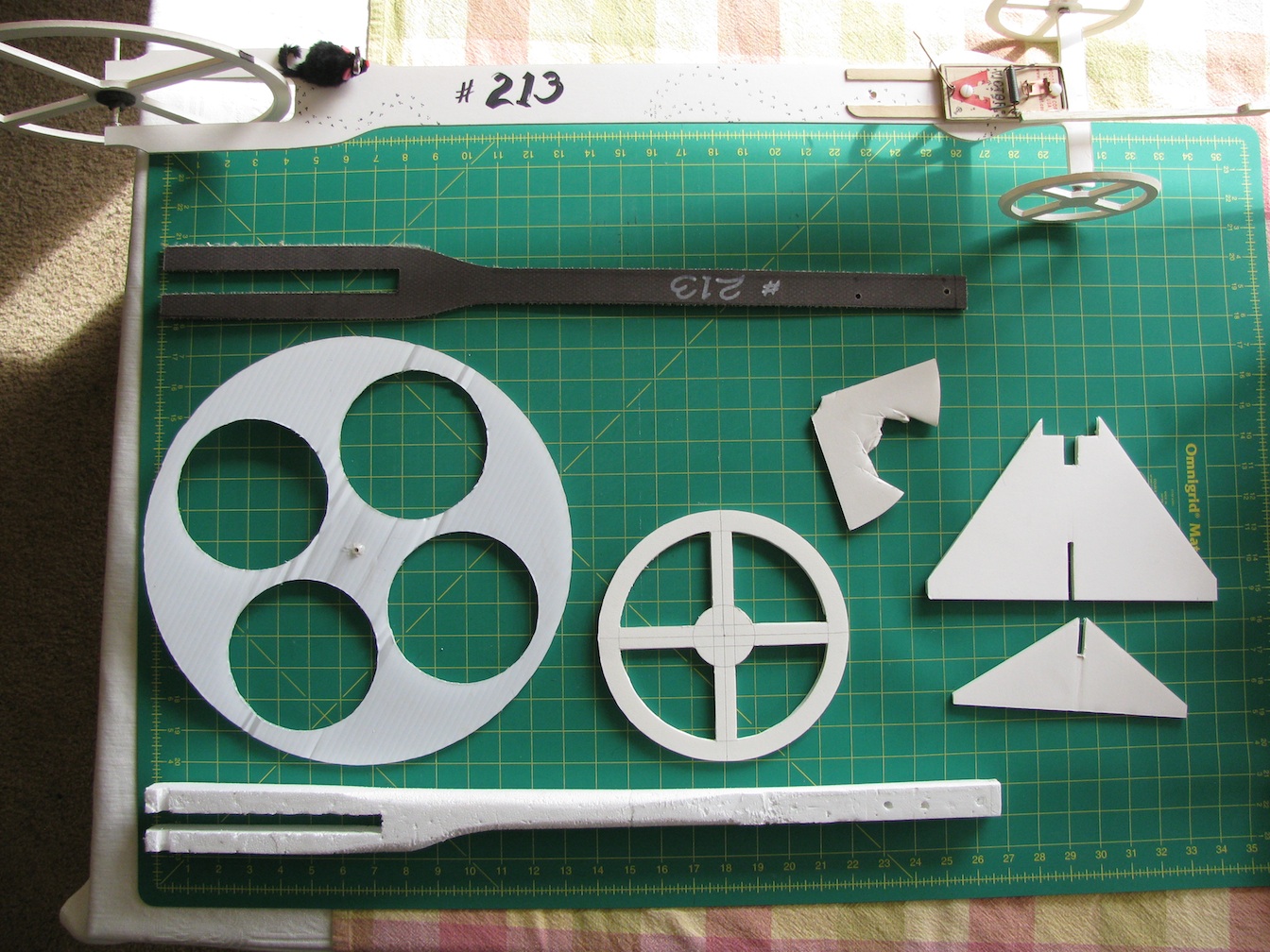 All the engineers and floor workers would compete. It was serious business. On the green mat are several materials I tried out before settling for foam board.