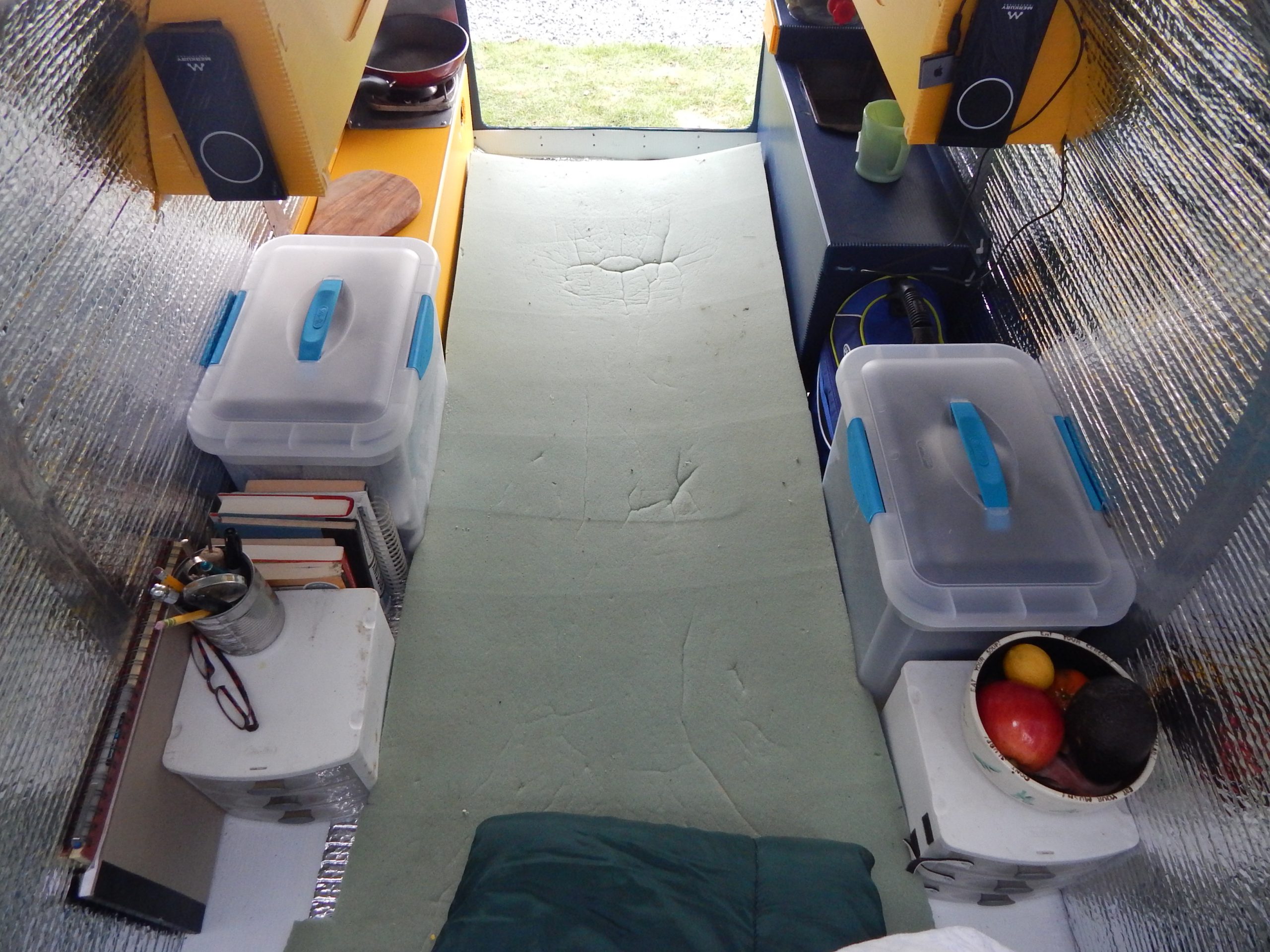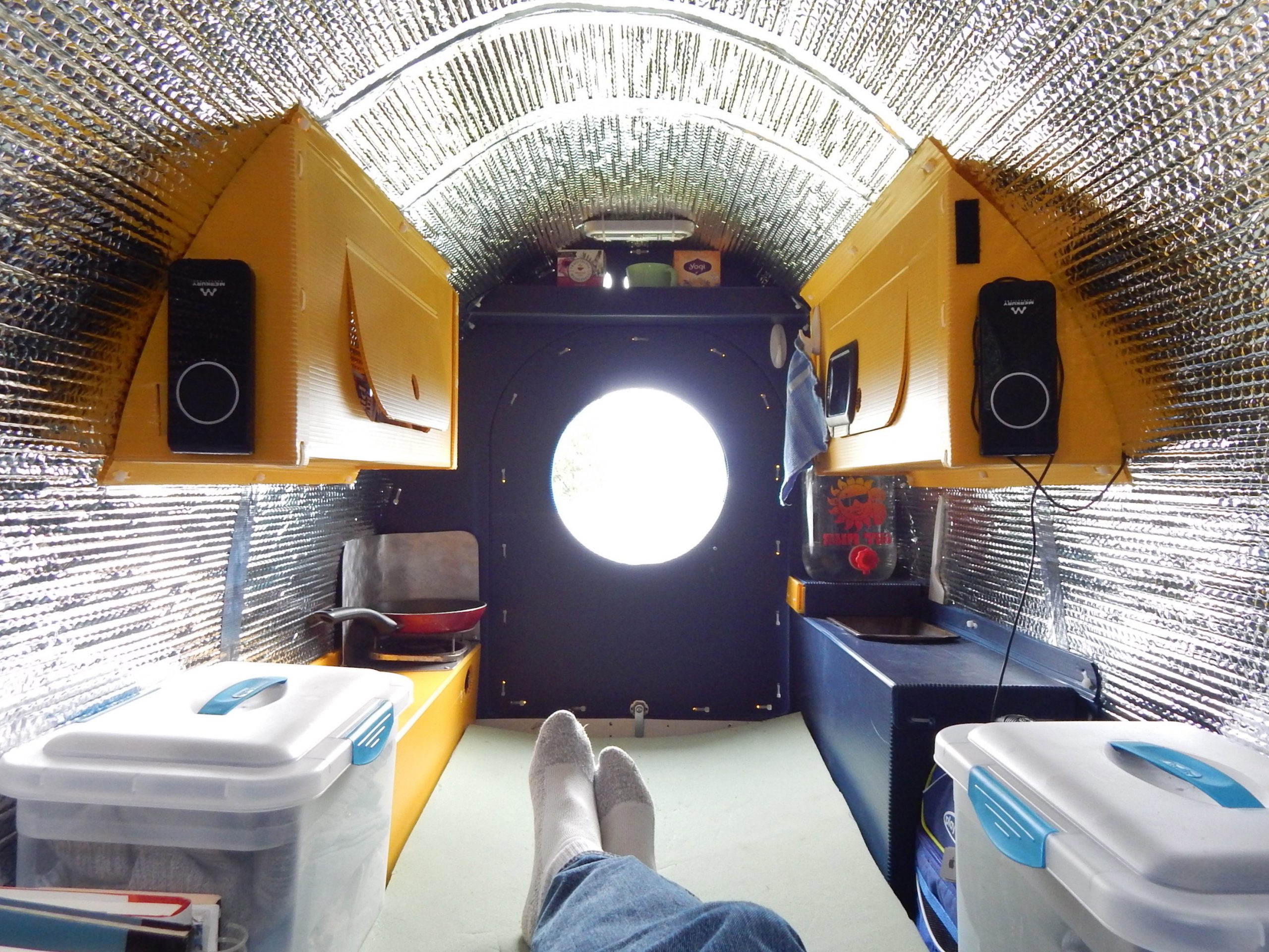 Fresh air vent flaps were added near where the occupant lies their head. This also helps with air circulation and helps keep condensation to a minimum.