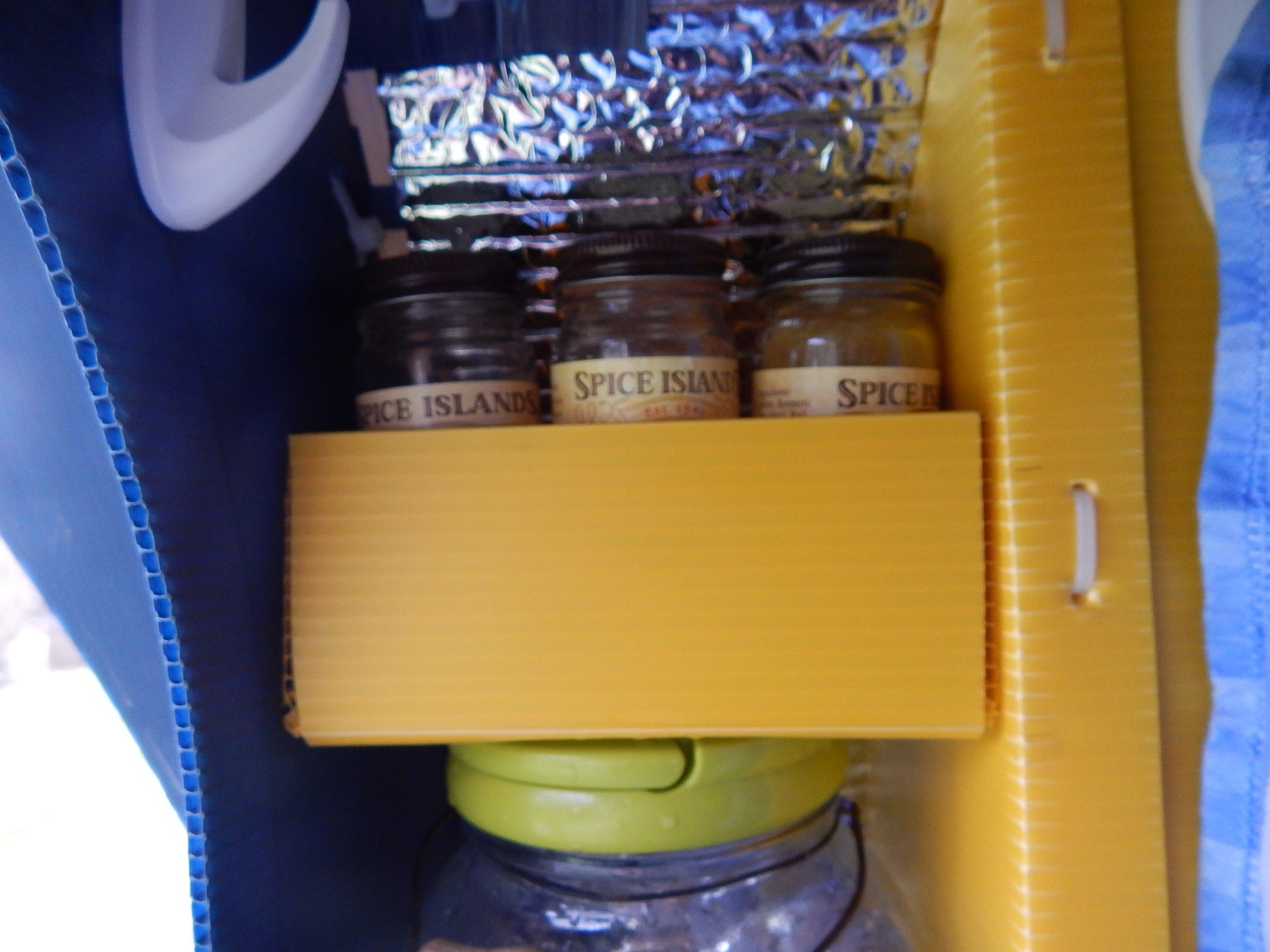 I was able to squeeze in a small shelf for spices above the water jug.