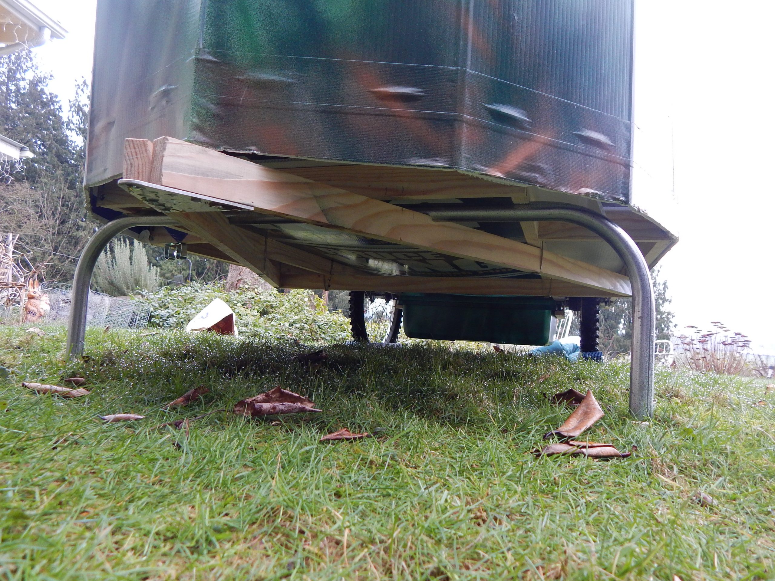 Once the wheel chucks are in place, the 1″ electrical conduit legs are deployed.