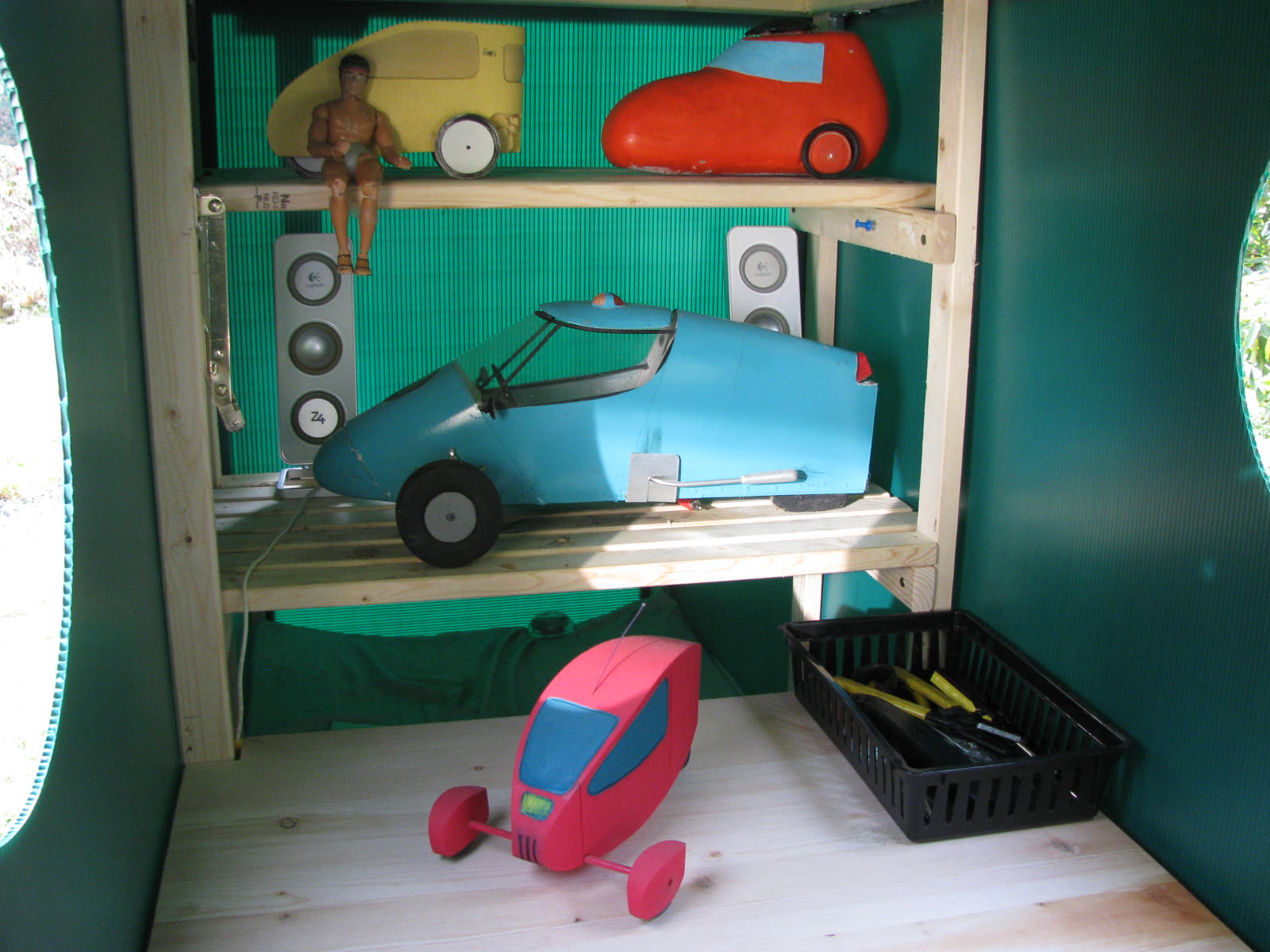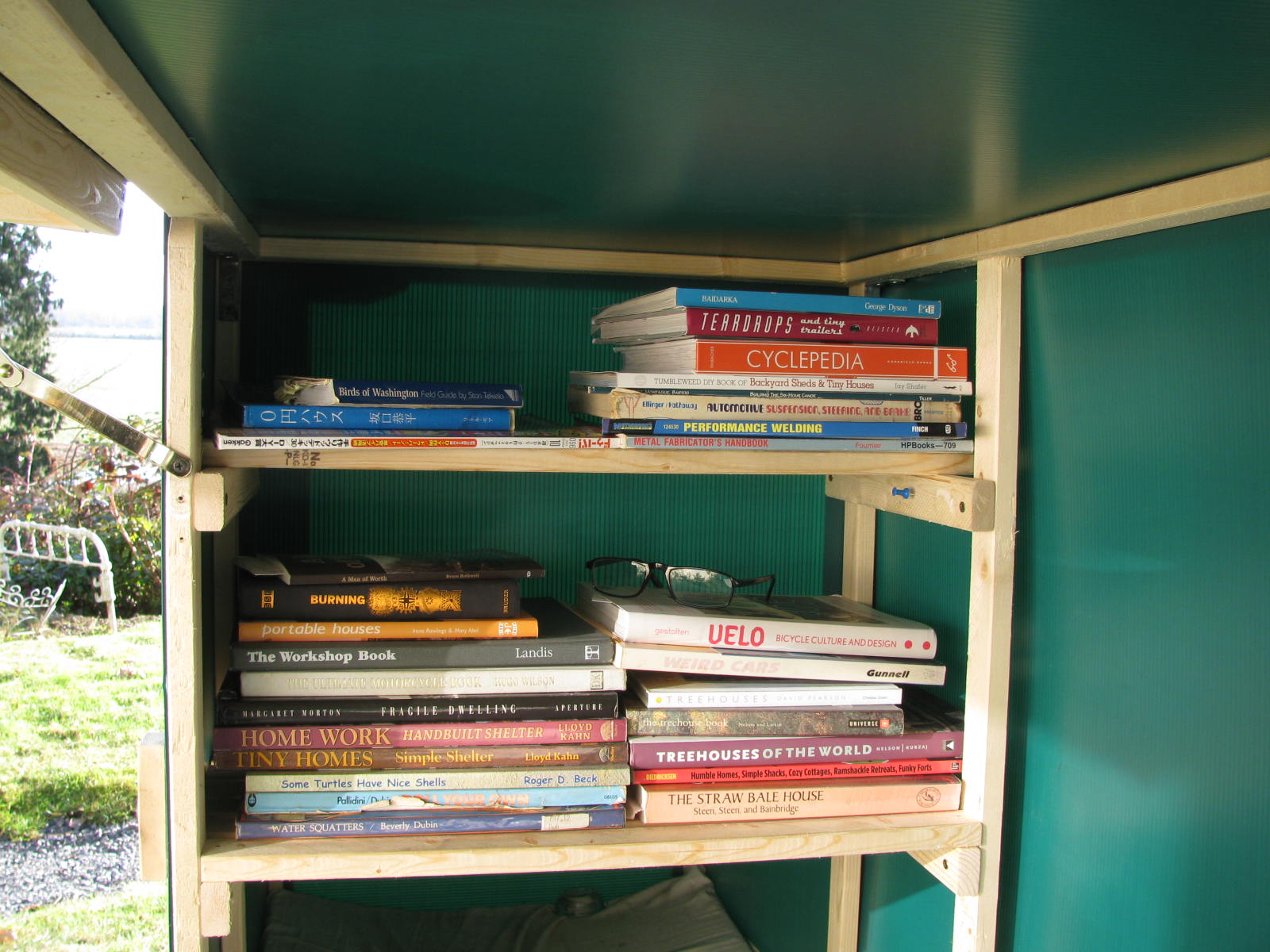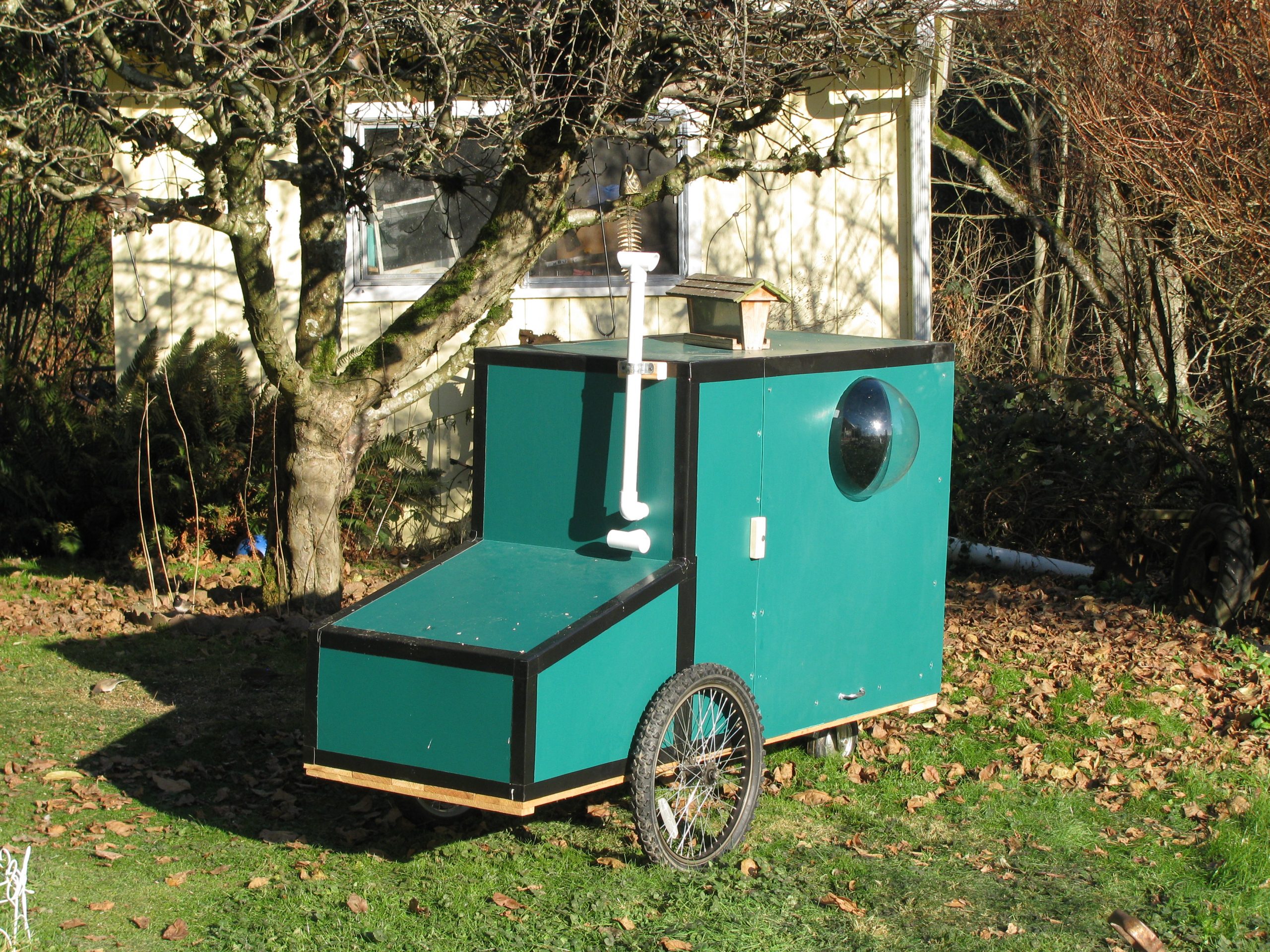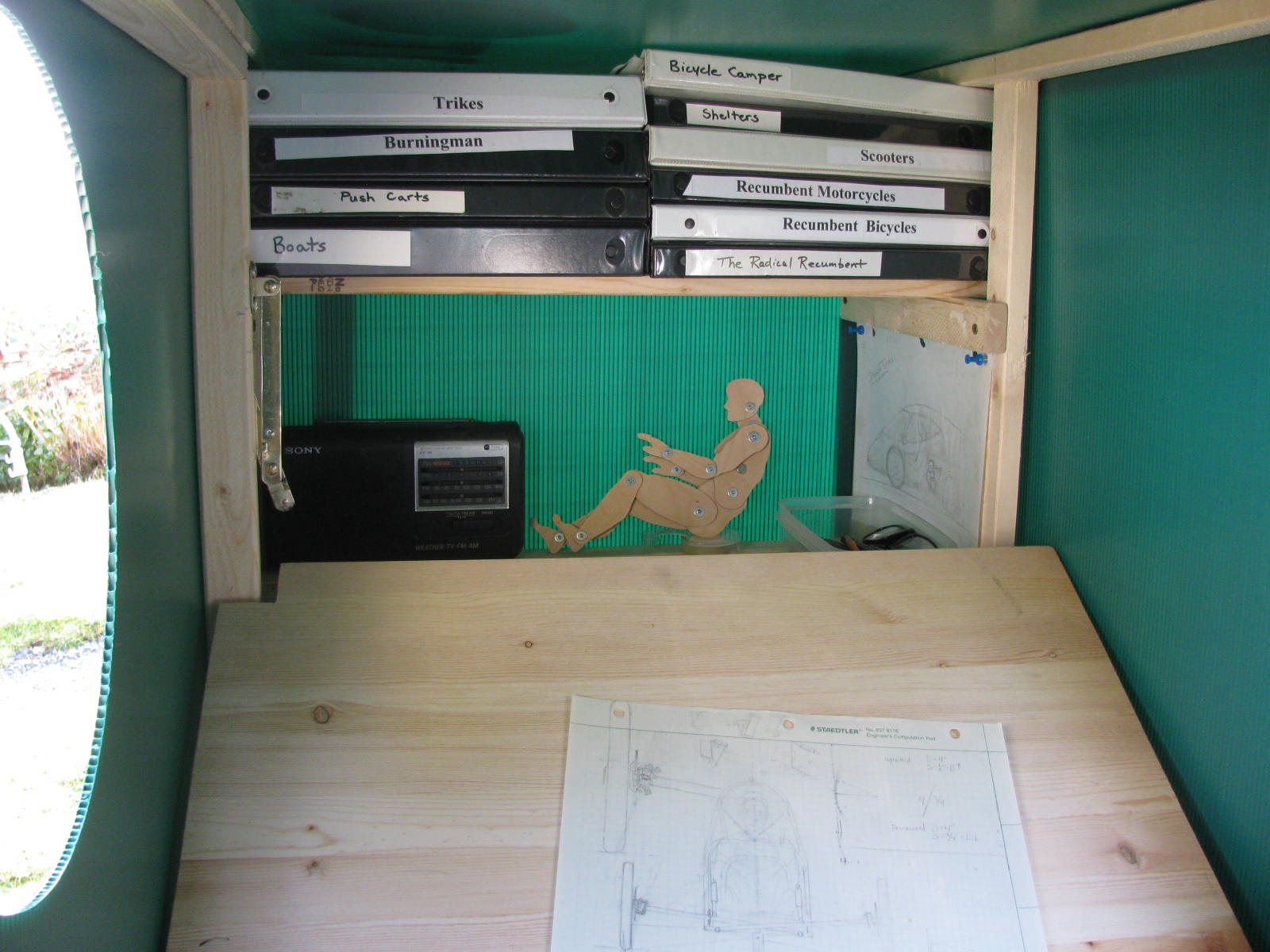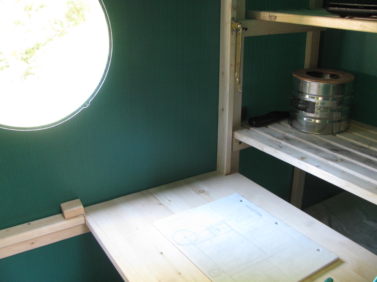 This cart was made 2 feet wide by 6 feet long, just long enough to lay down in. I also included a desk, some shelving and a small heater/stove.