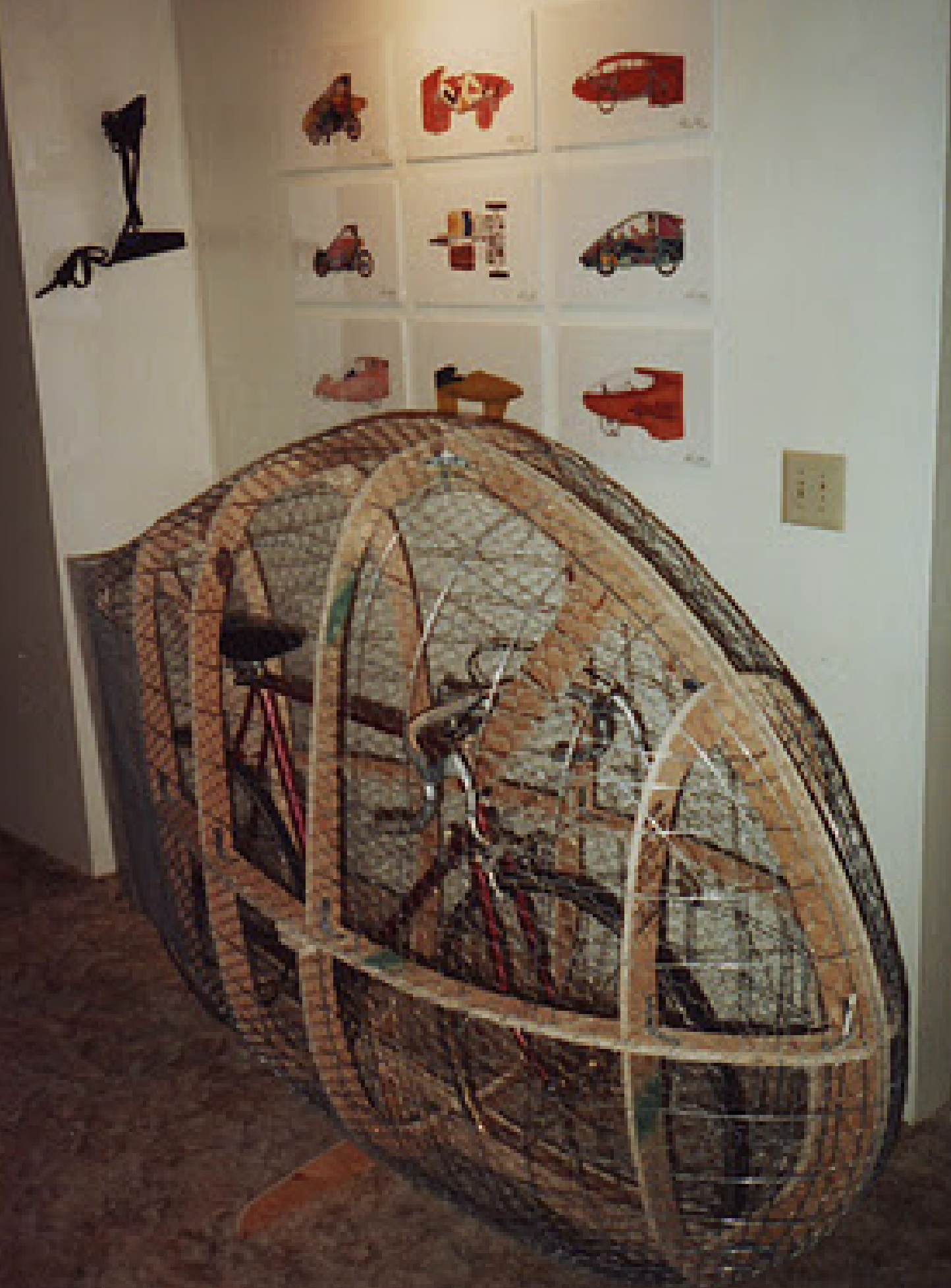 Thin wire was used to attach the chicken wire to the 1/8″ wire frame. 1/4″ box mesh was added to the rear tail.