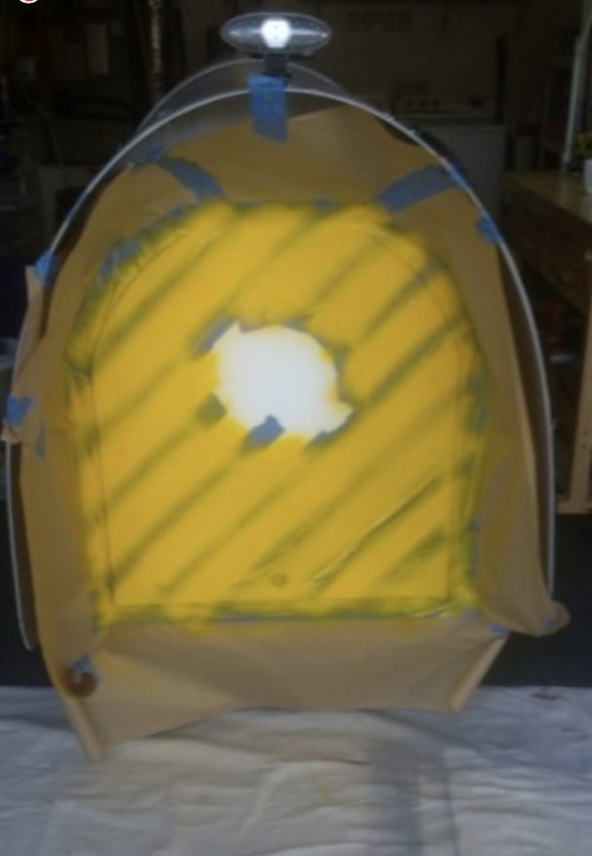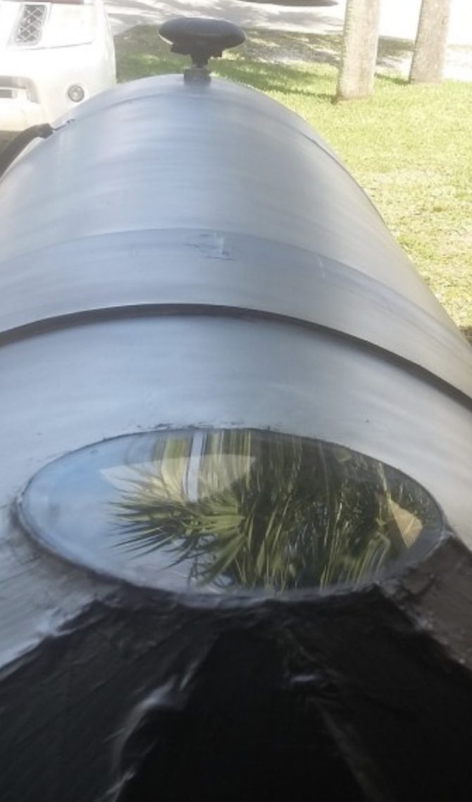 For his skylight he cut out the bottom center of an old cookie tin, then attached Lexan and sealed it up.