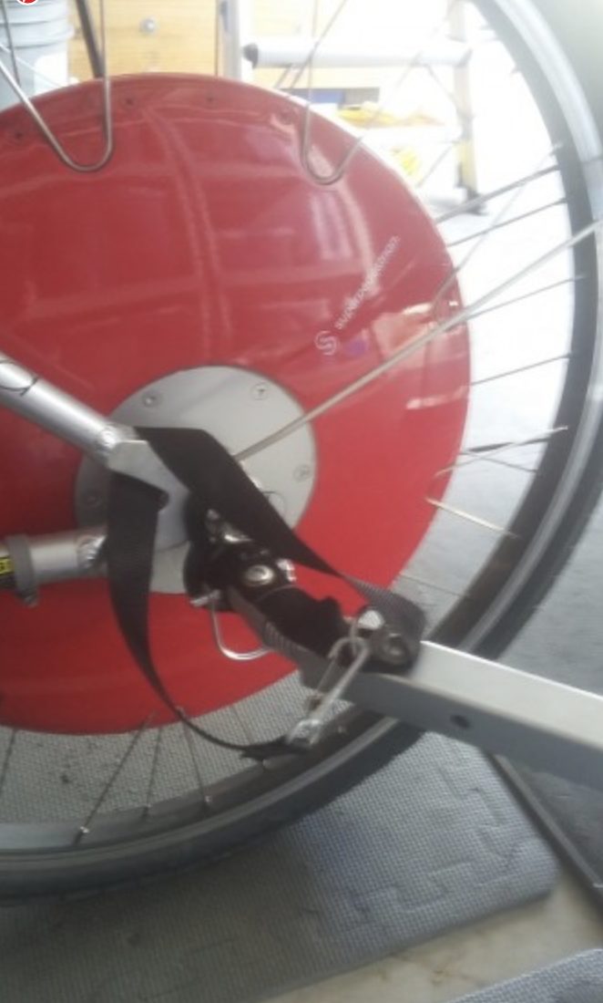 The red disk is part of an electric hub motor. Very handy to have for hill climbing.